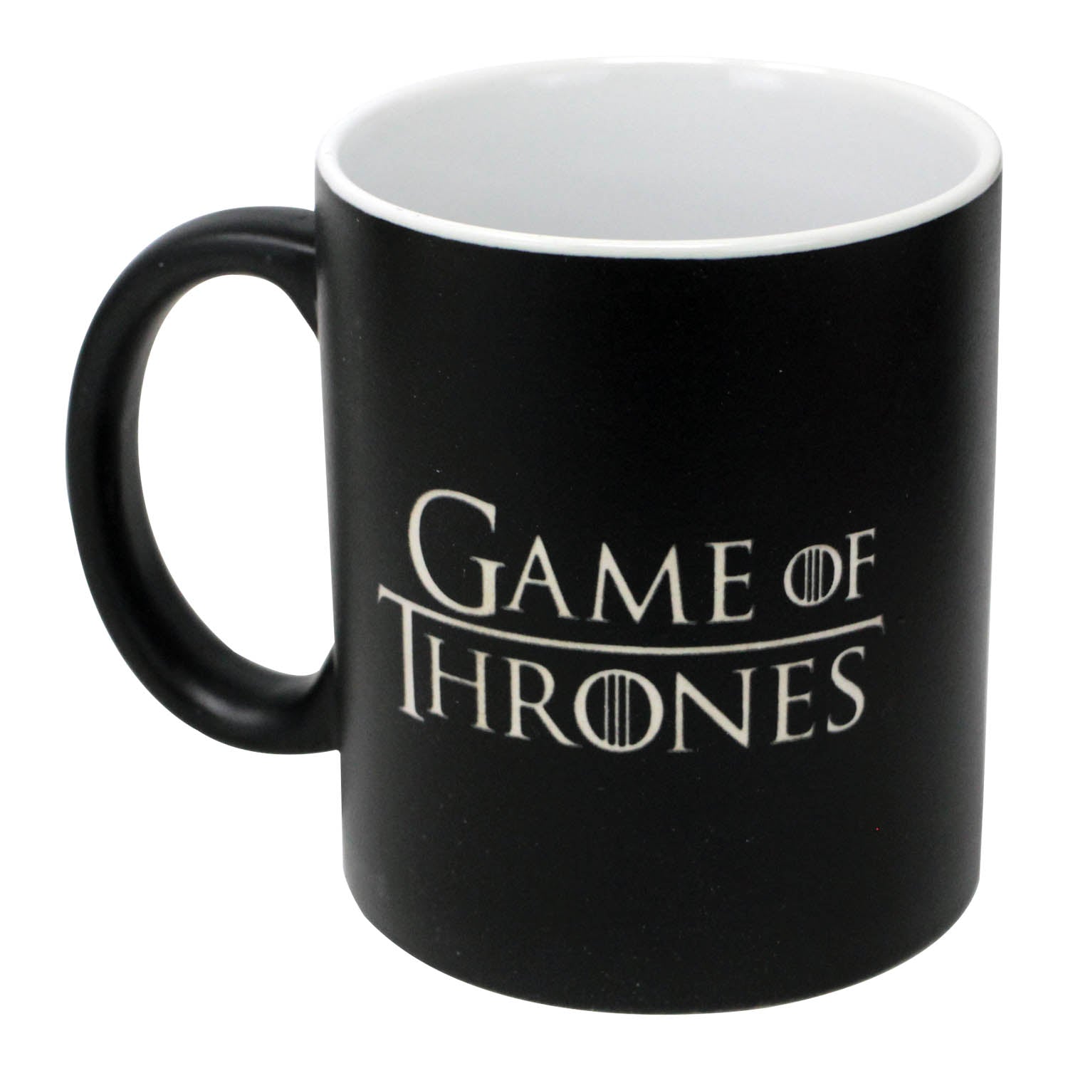 - Mugs feature the symbols of the Houses of: Stark, Targaryen, Baratheon, & Lannister.