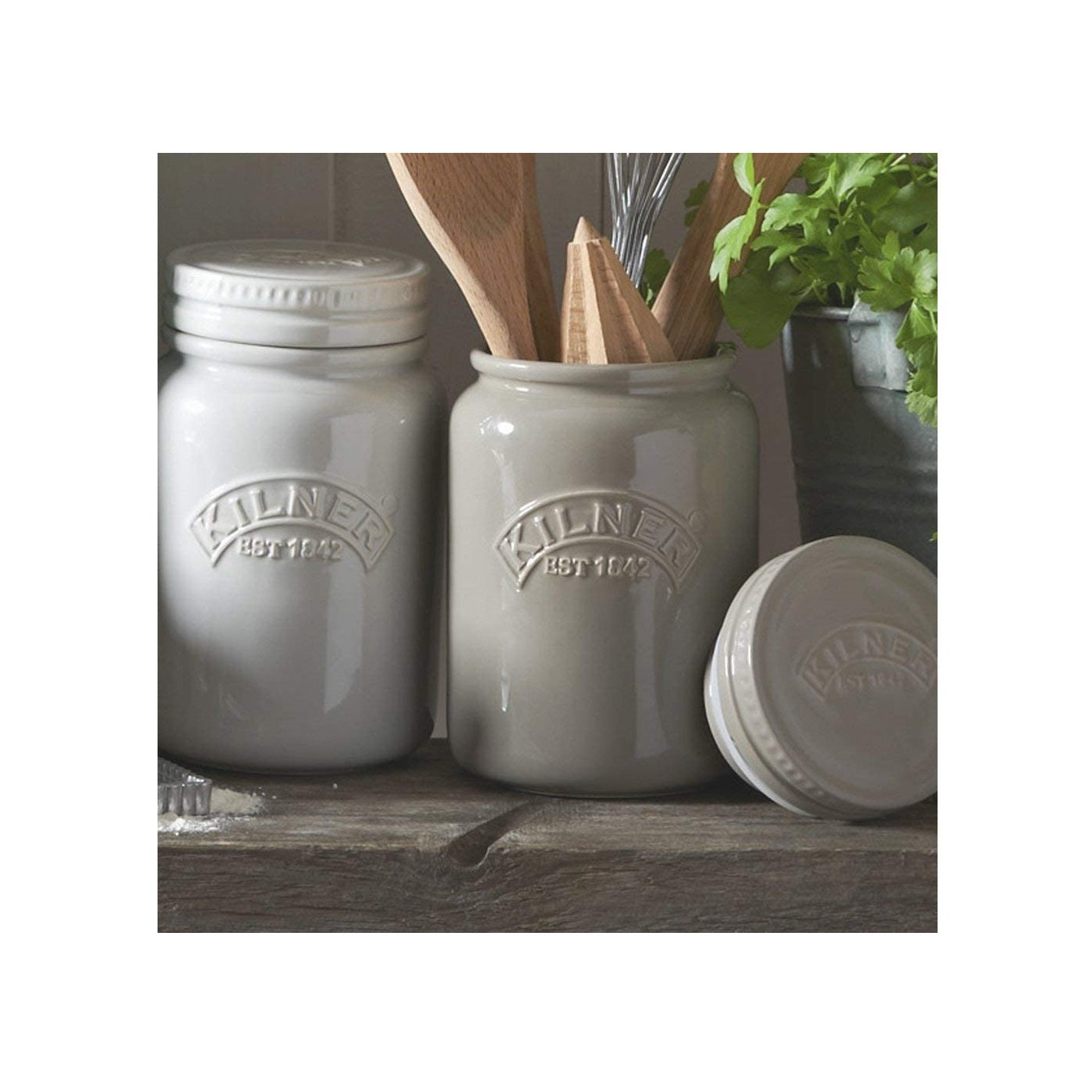 The Kilner push top jars are made from ceramic and boast a silicone seal to ensure maximum freshness. They are perfect for dry food storage like coffee, teas, and sugar. The jars also have a special edition back stamp on the base. The capacity is 600ml.