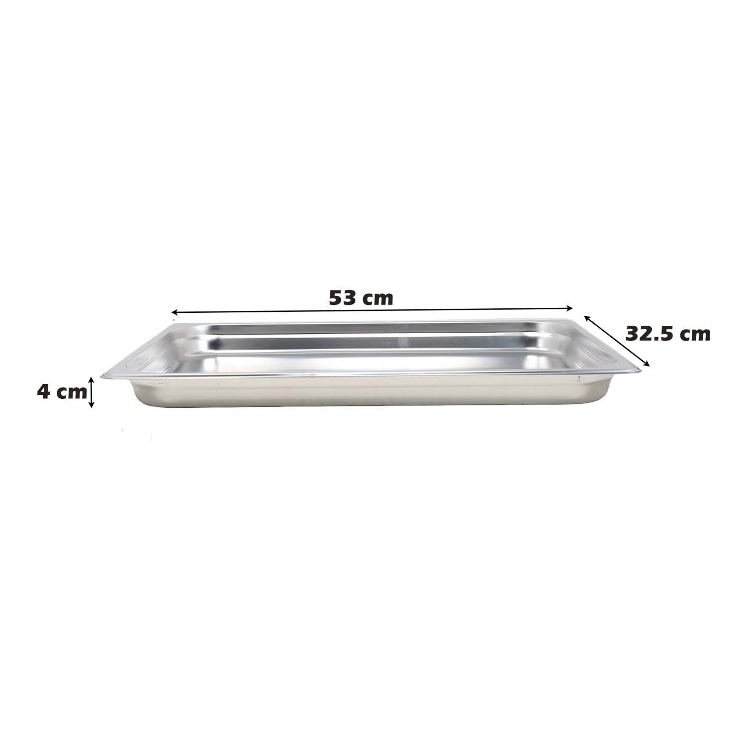 - Standard GN 1/1 pan with a 4 cm depth, perfect for serving side dishes, salads, desserts, and warm meals.