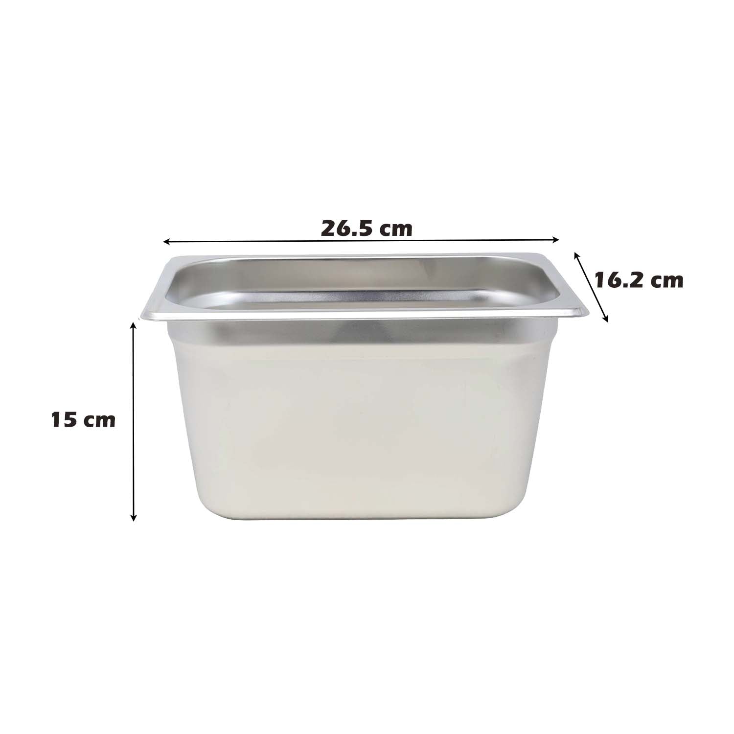 - Standard 1/4 GN with 15cm depth—Suitable for soups, vegetables, curries, or chilled foods in catering and hospitality setups.