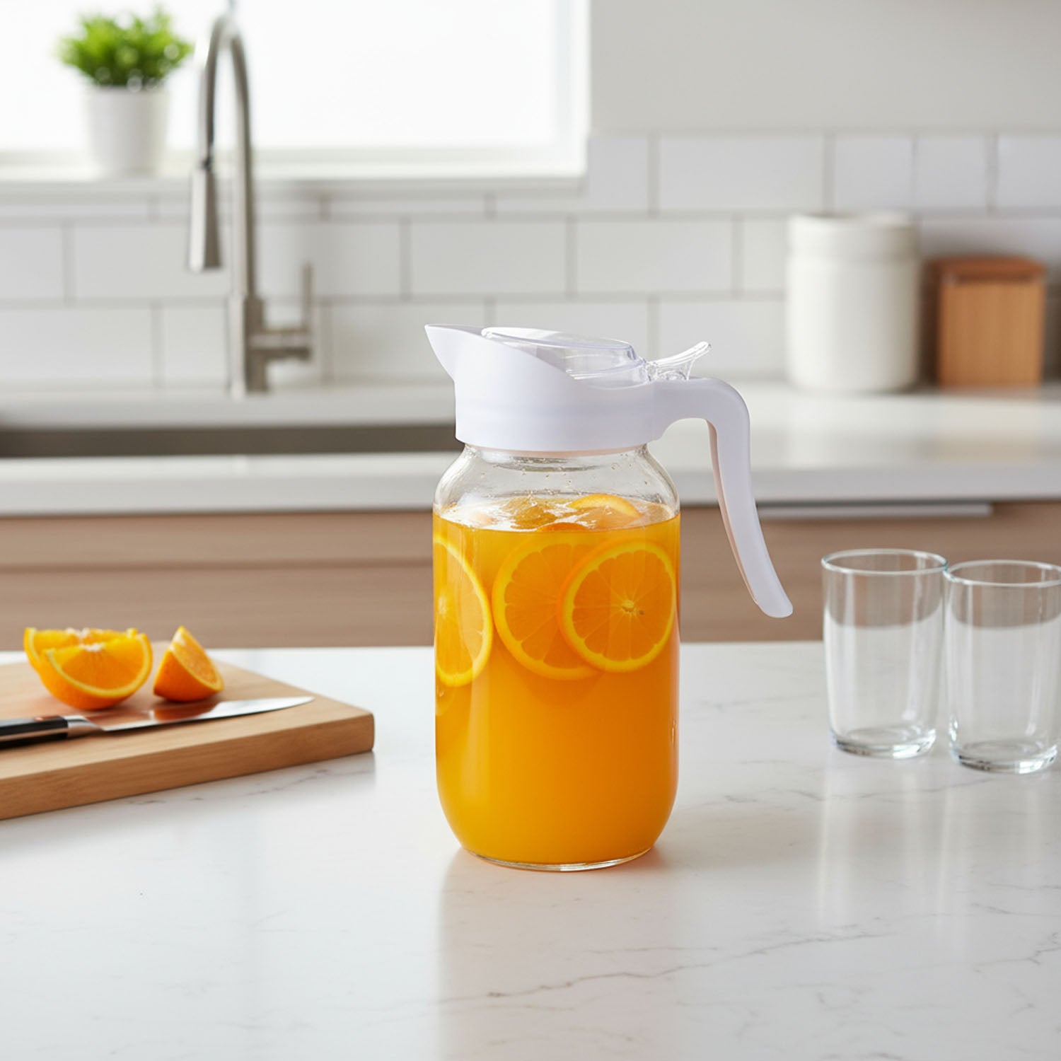 Serve your favourite drinks in style with this 1.5L Clear Glass Pitcher featuring a round body and a durable plastic lid, pourer, and handle in assorted colours (grey, black, white, blue). Its sleek, modern design makes it perfect for everyday use or entertaining guests. Ideal for water, juice, iced tea, and more—an essential for any kitchen or dining table.