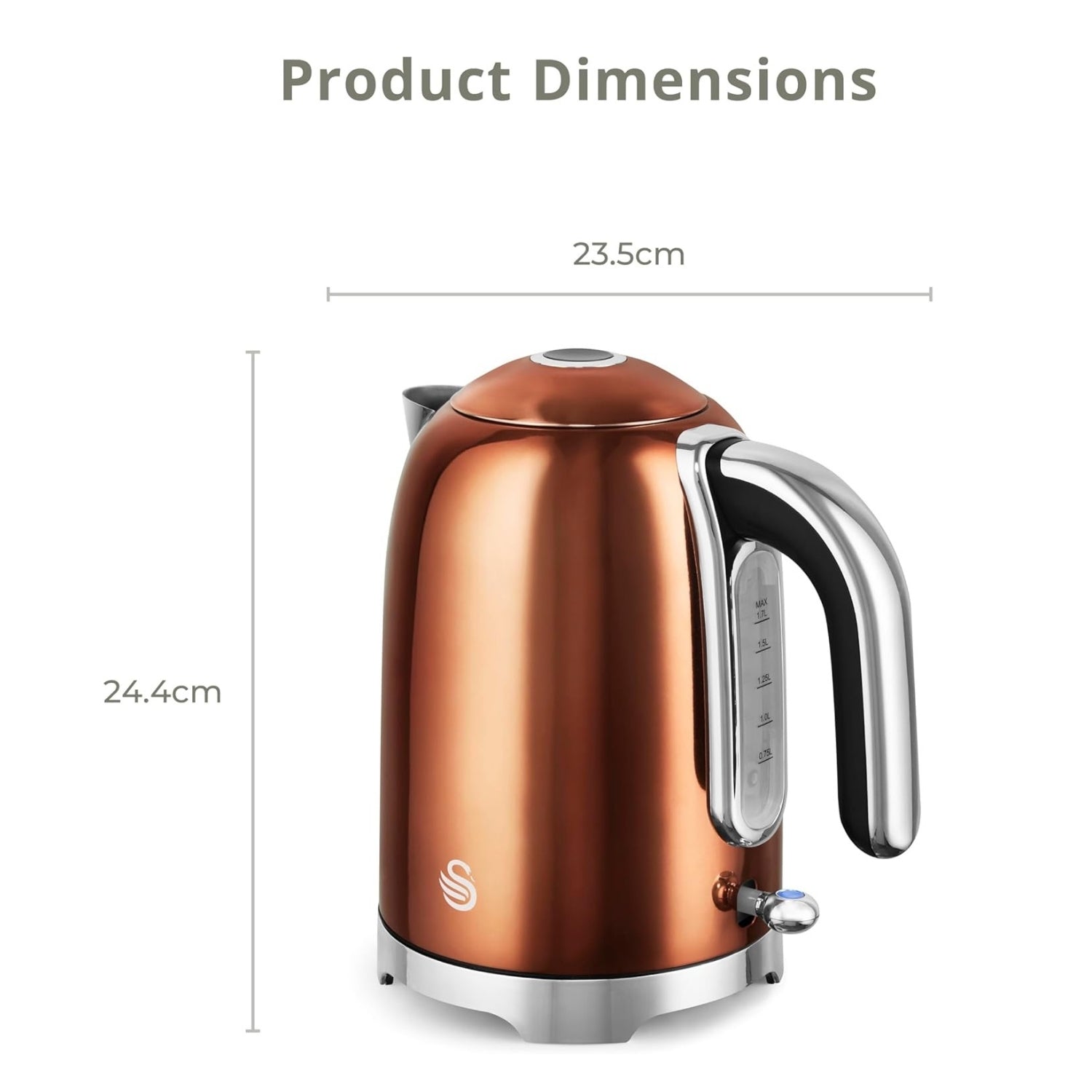 1.7L Stainless Steel 3000W Copper Swan Solace Electric Kettle