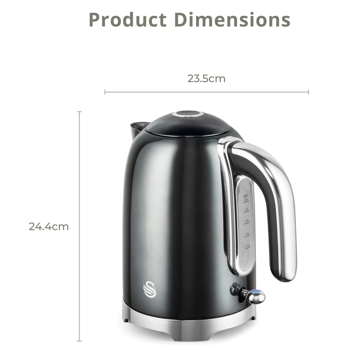 1.7L Stainless Steel 3000W Graphite Swan Solace Electric Kettle