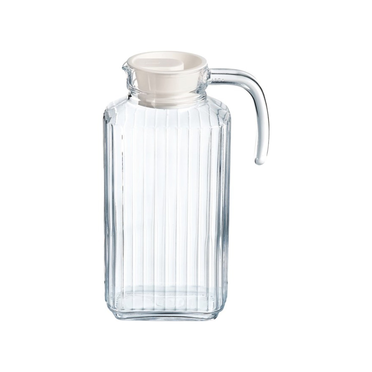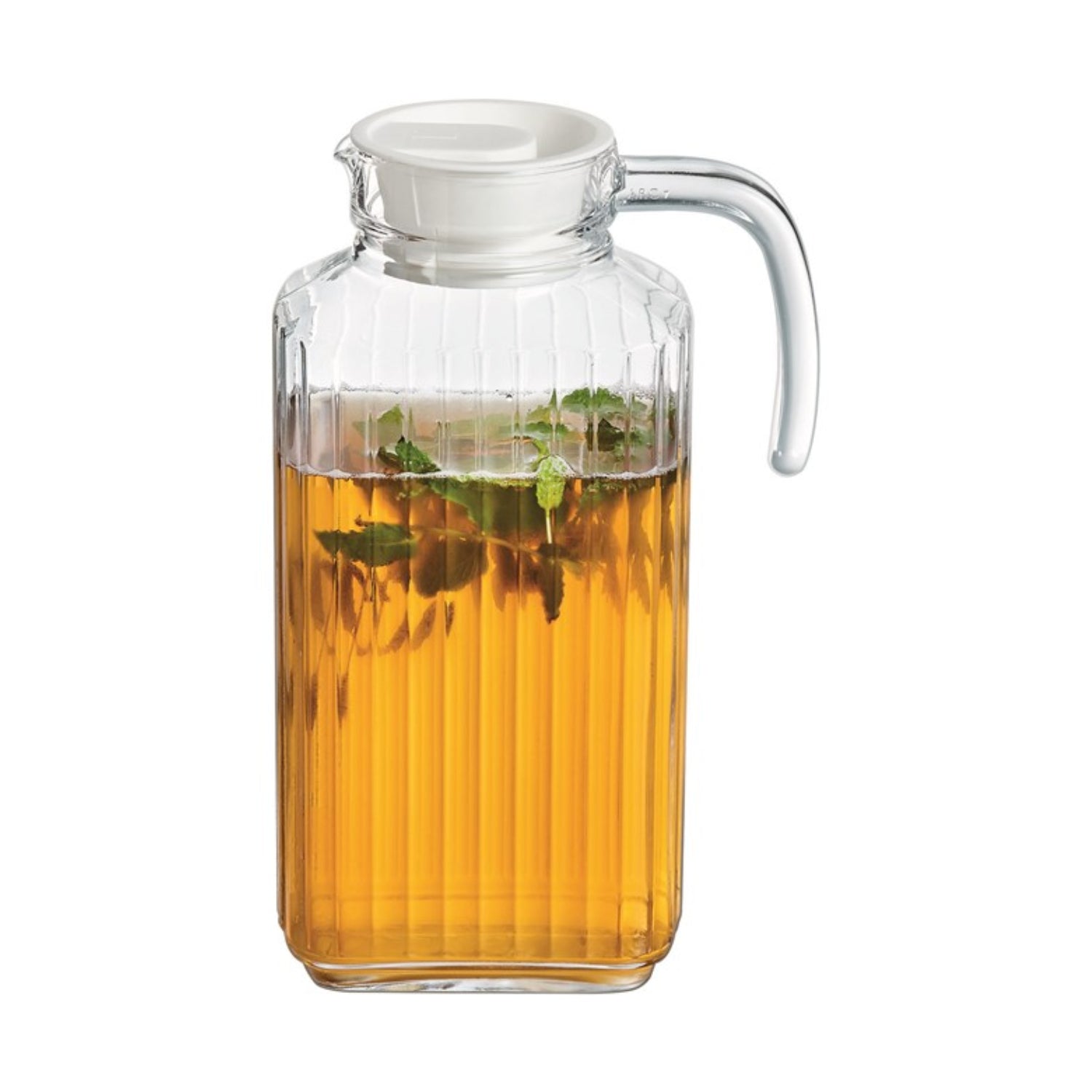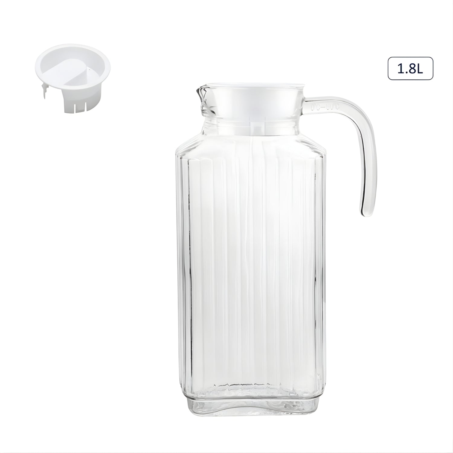 Serve your favourite beverages in style with this 1.8-litre glass pitcher that features a sleek square design and a secure white plastic lid. Perfect for water, juice, iced tea, or cold brew, this pitcher combines functionality with elegance, making it ideal for everyday use or entertaining guests.