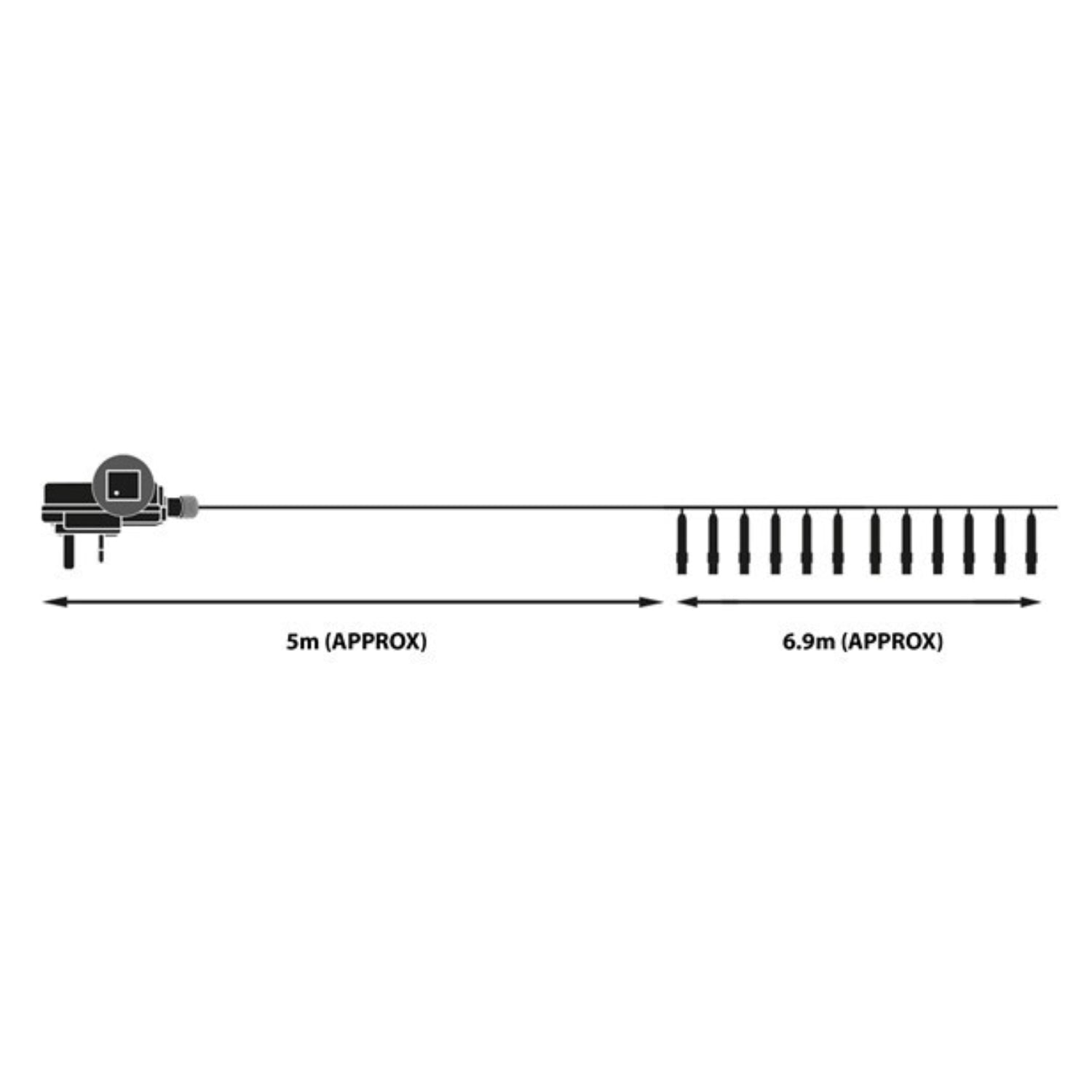 This amazing set of chaser lights comes in a bright white colour at a length of 6.9m meters and holds 100 individual LED lights. Lead wire length 5m.