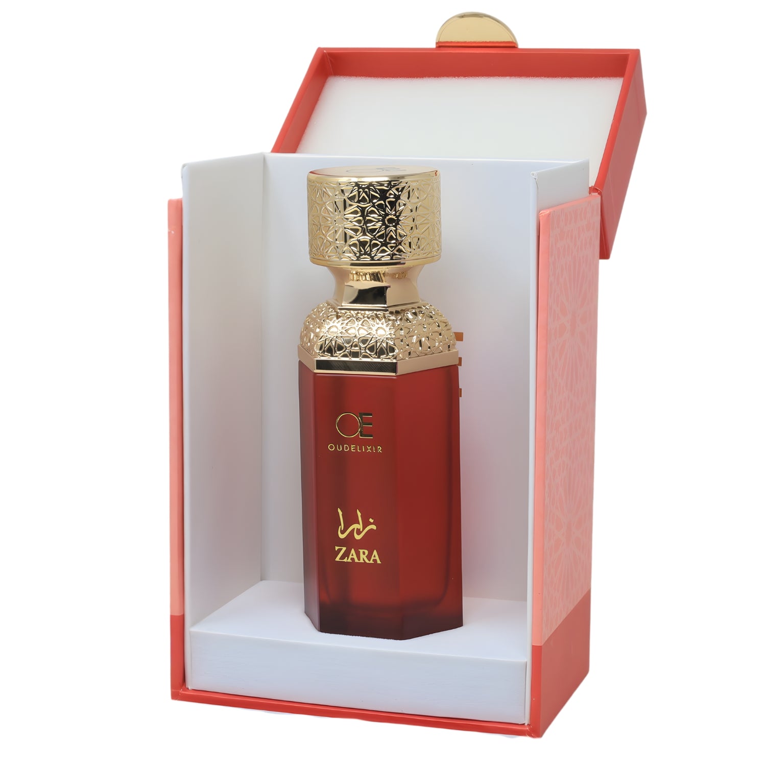 Oud Elixir Zara is a luxurious perfume that blends the fresh elegance of rose with the warm, woody depth of oud and a touch of ambergris. Its refined composition evokes the magic of the desert at dawn, leaving a sophisticated, memorable impression. Encased in a refillable bottle, it offers both elegance and sustainability for those who appreciate timeless beauty.