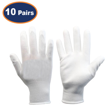 10Pairs Large White Non-Slip PU Palm Coated Work Gloves