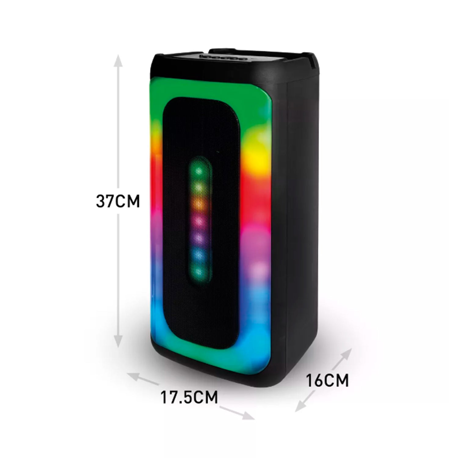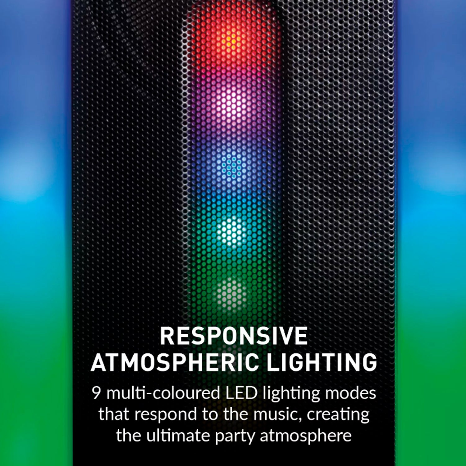 - This speaker features 9 LED light modes that respond to the music, creating the ultimate party atmosphere.