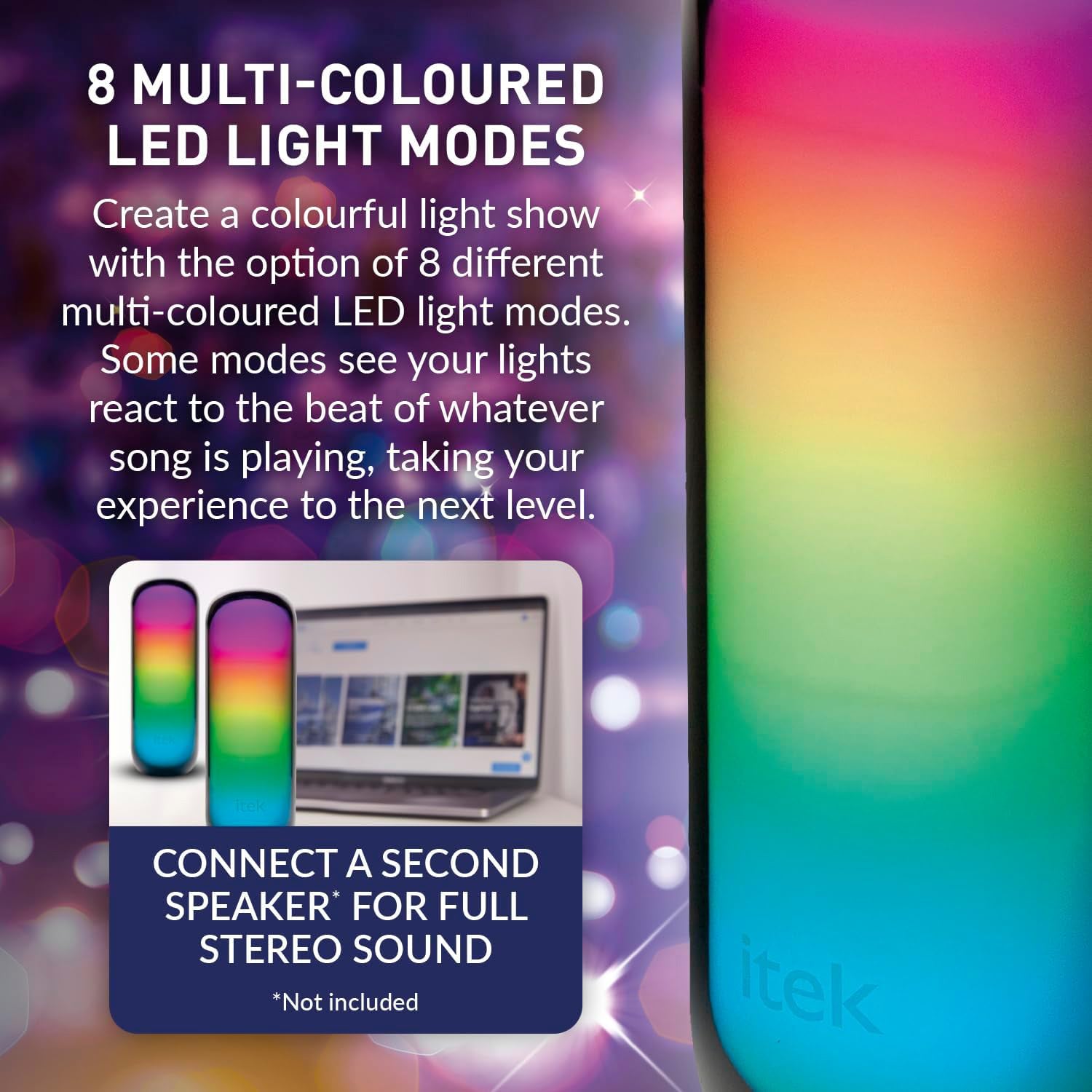 - Features eight vibrant multi-coloured LED light modes that enhance any setting, including flashing modes that pulse in sync with the beat.
