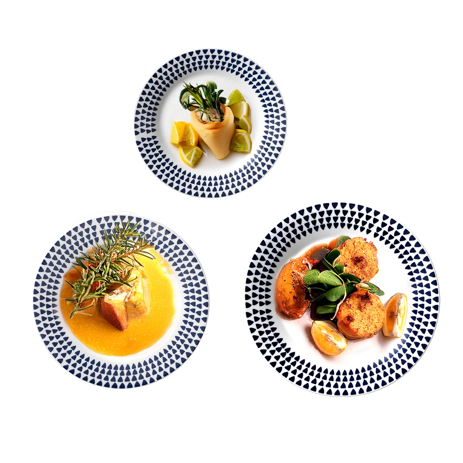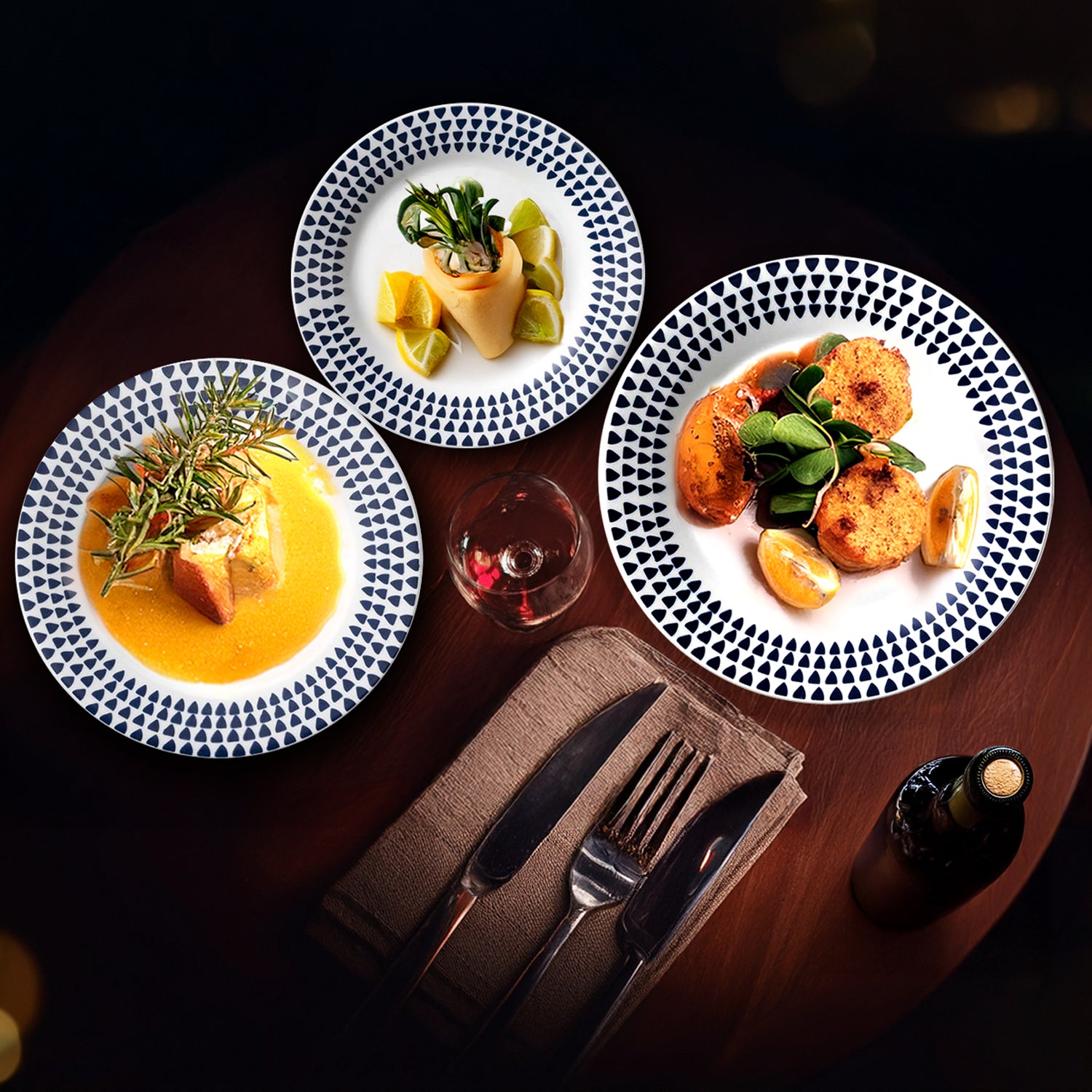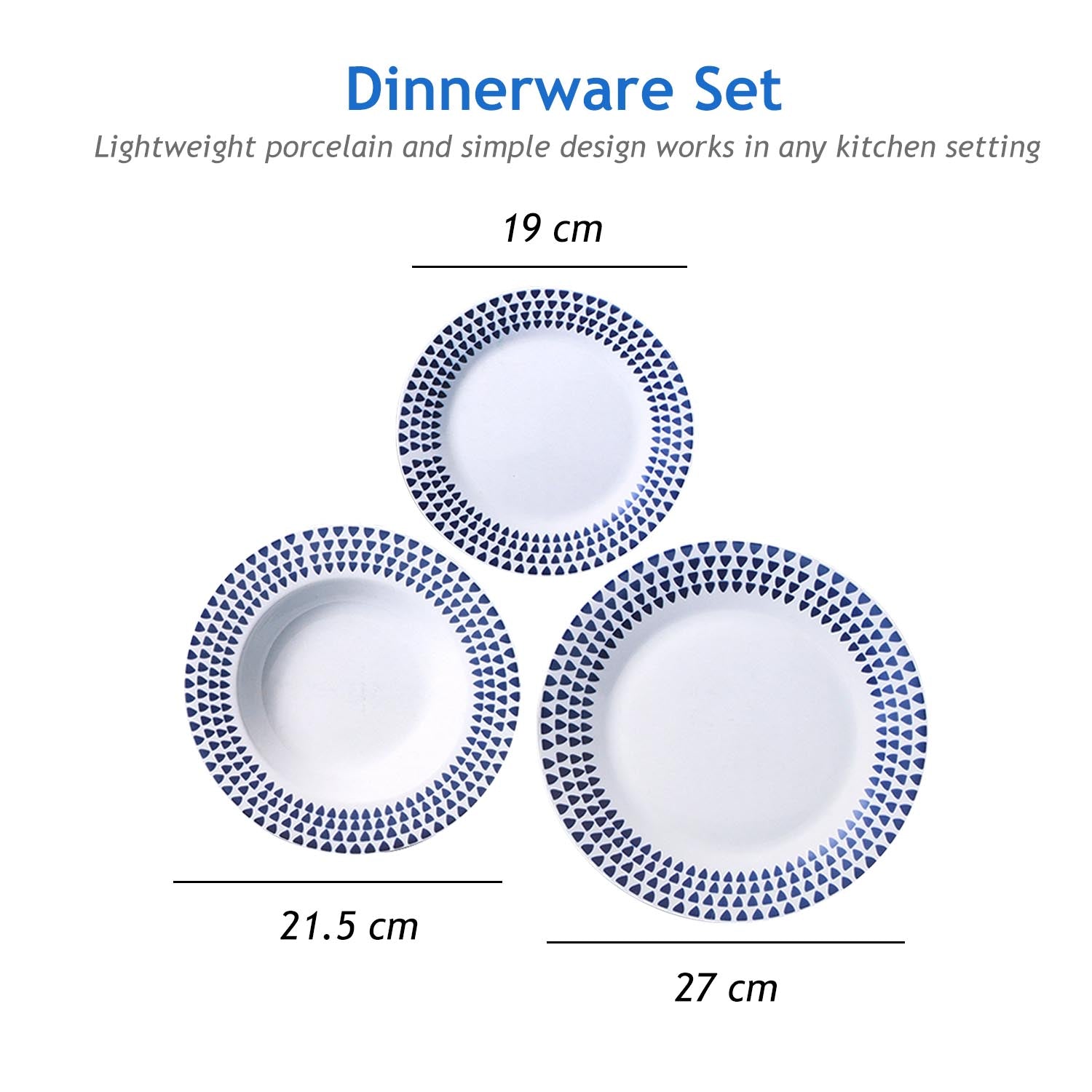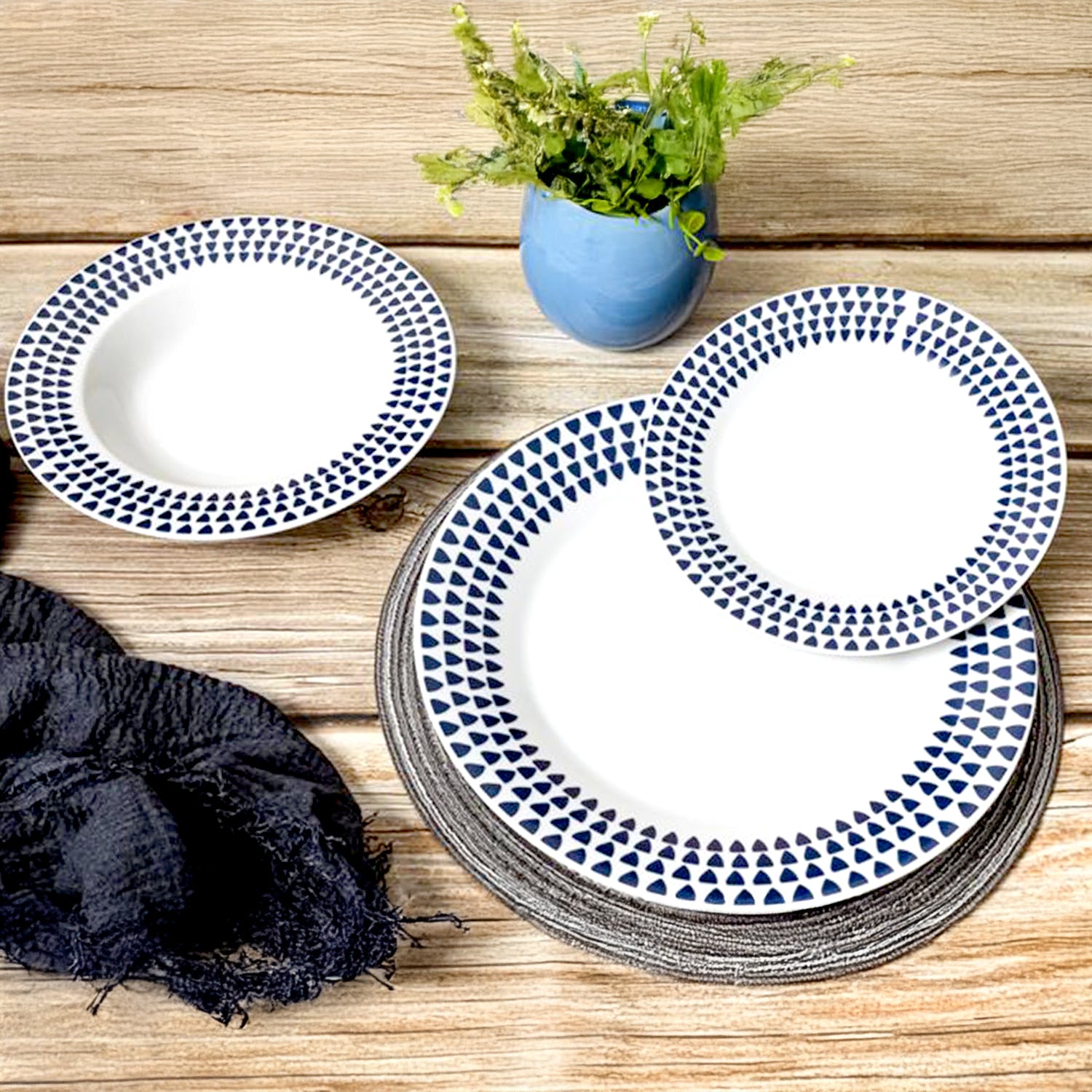 12-pc Dinner Set Round White Soup Dessert Plates Blue Dotted