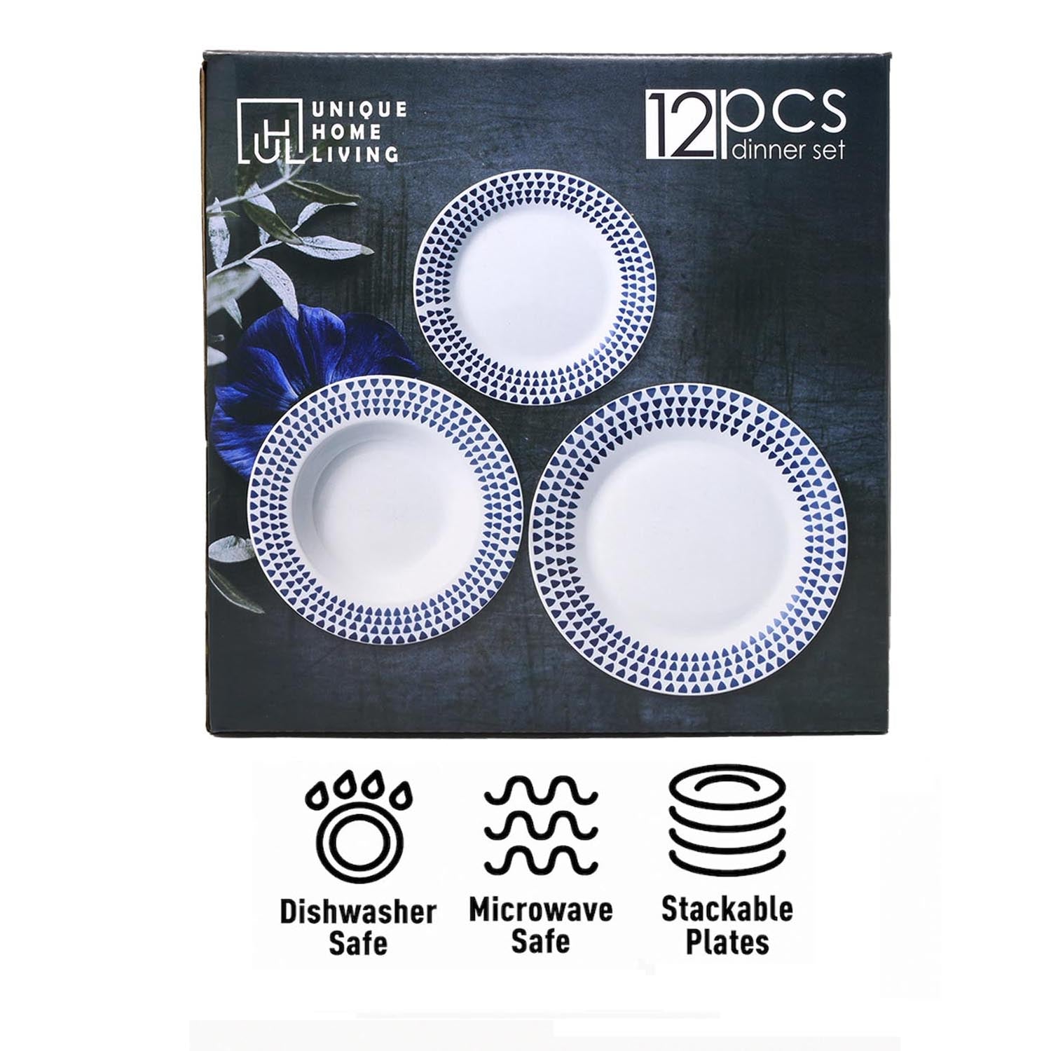 - Complete 12-Piece Set – Includes dinner plates, side plates, and bowls (exact composition may vary slightly by design).