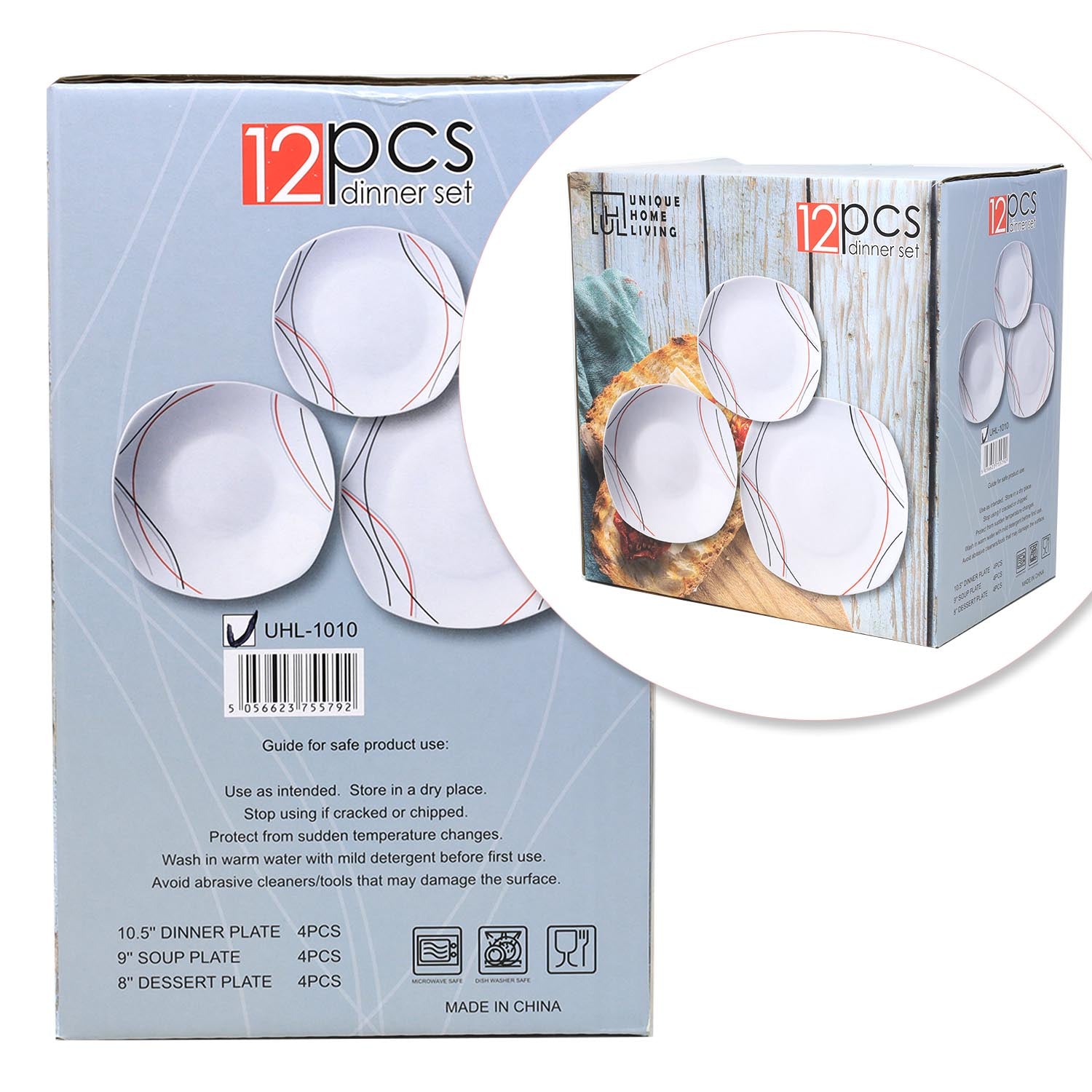 - 4pcs 10.5" Dinner Plates | 4pcs 9" Soup Plates | 4pcs 8" Dessert Plate