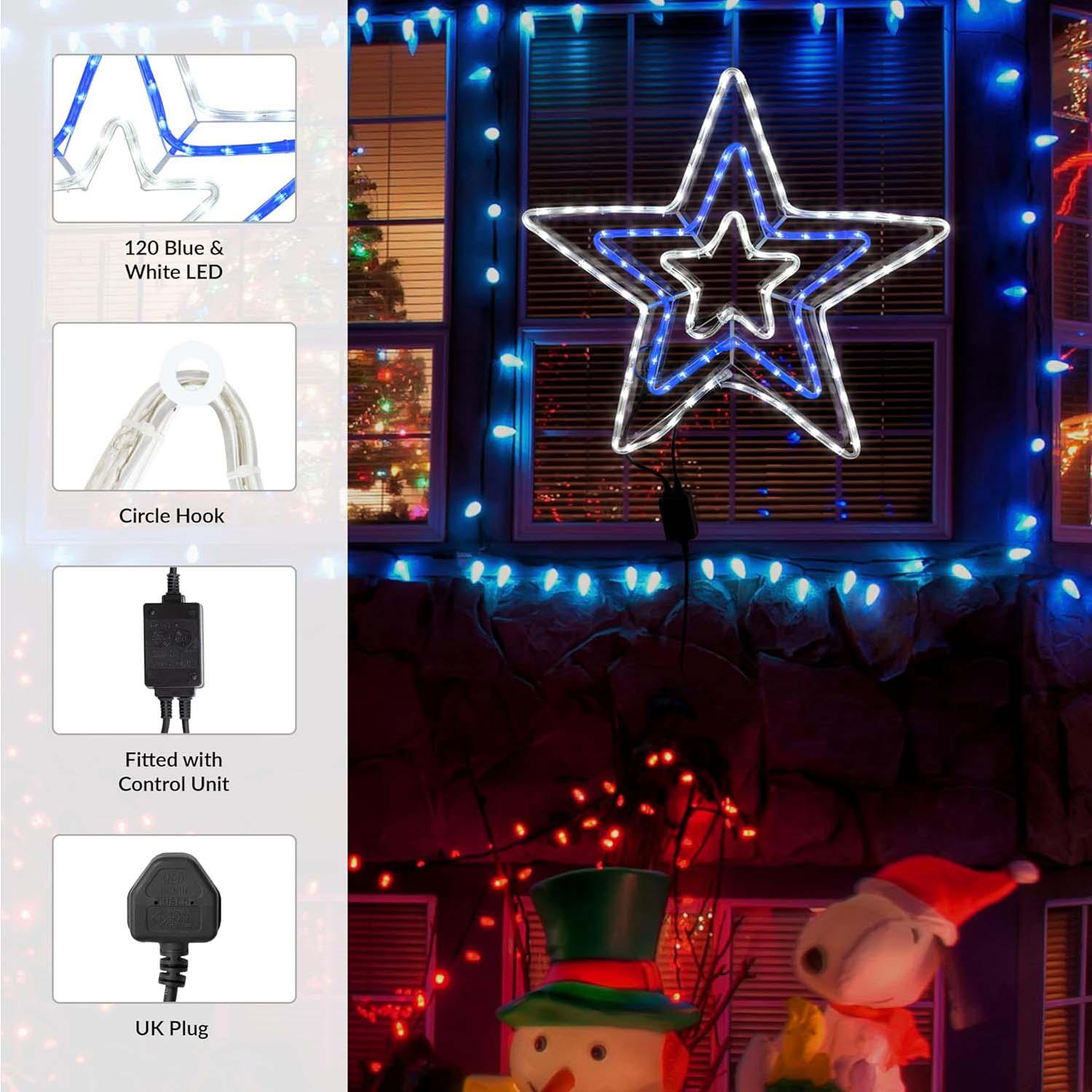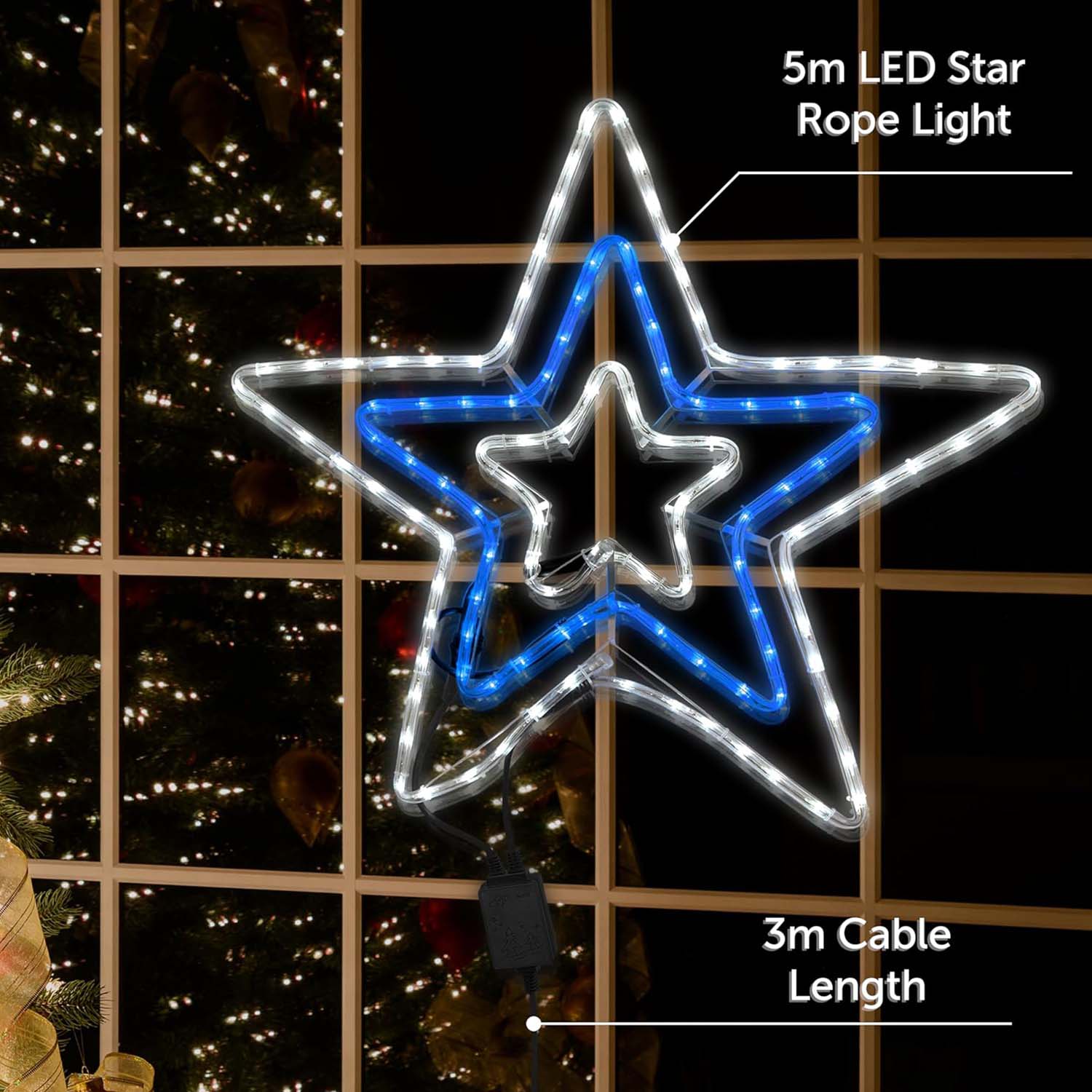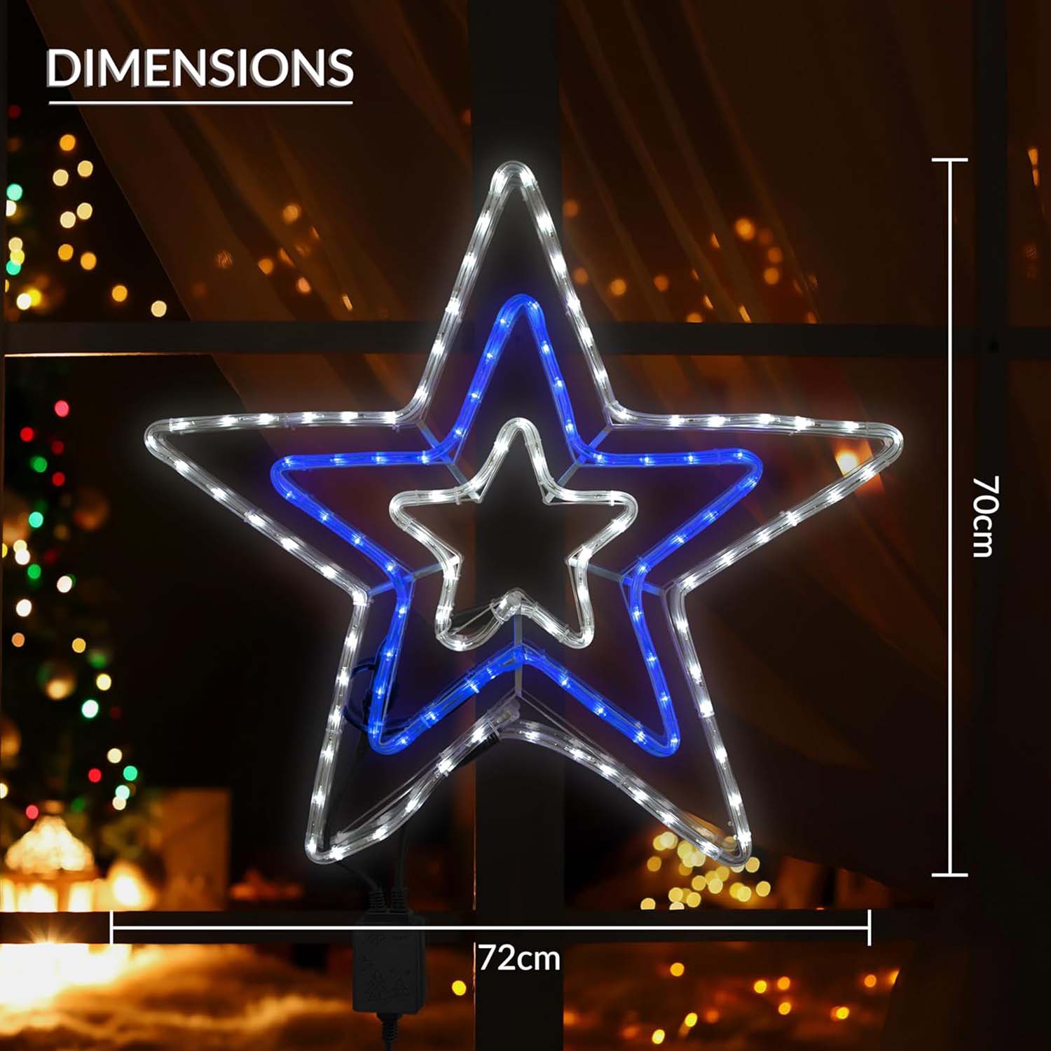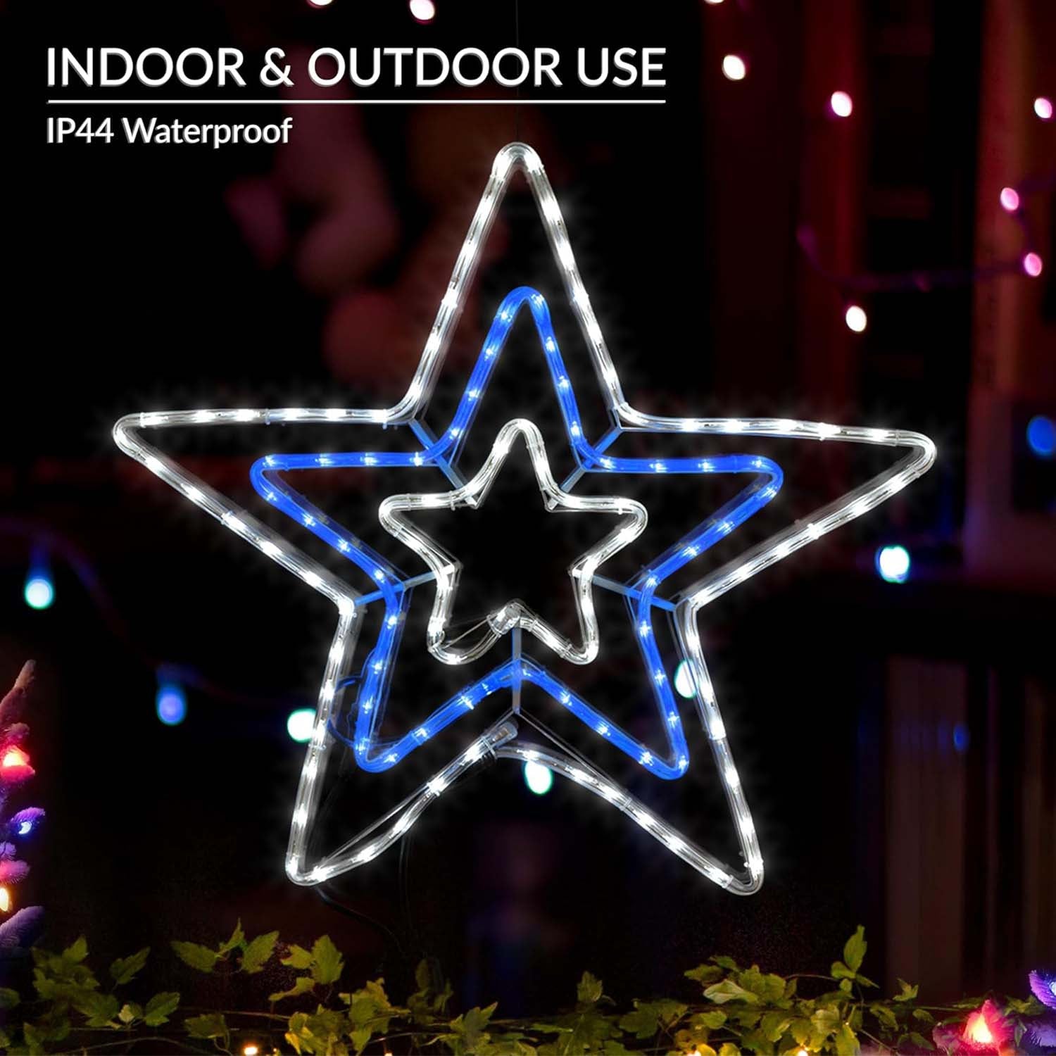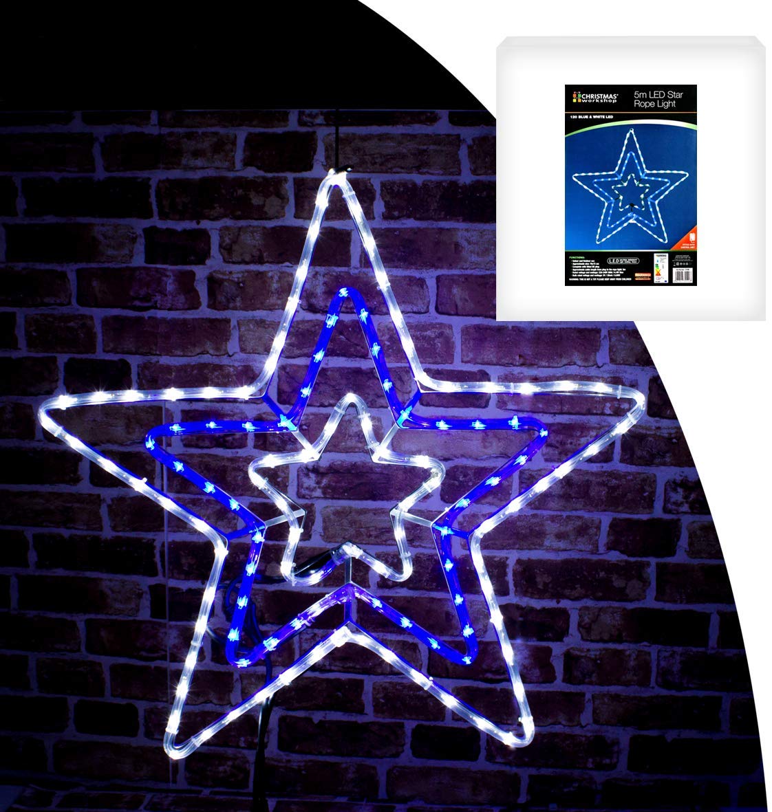 - This festive blue and white rope light in the design of a star will be sure to add some fun to your home!
