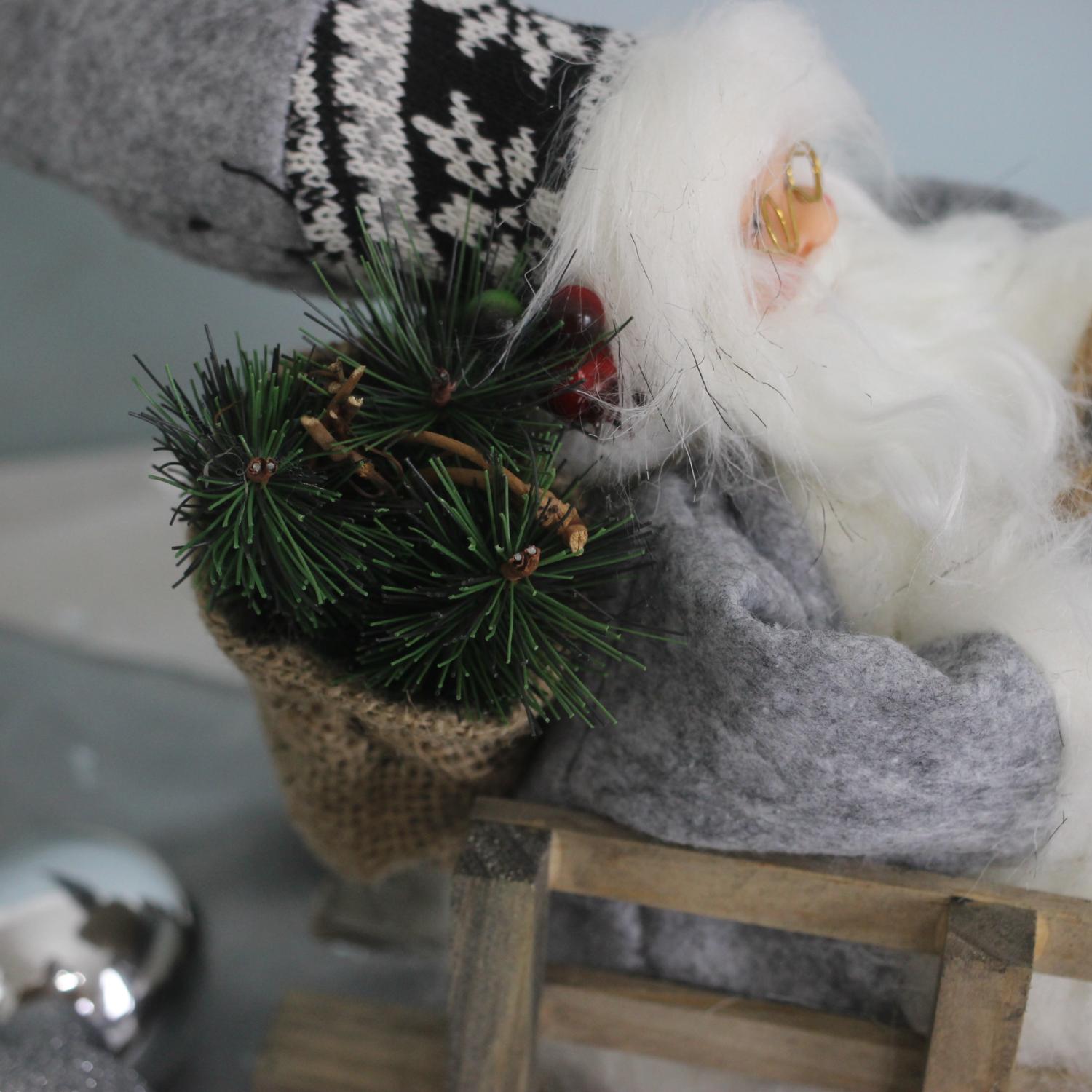 12inch Standing Grey Santa Claus Sleigh Ornament Christmas