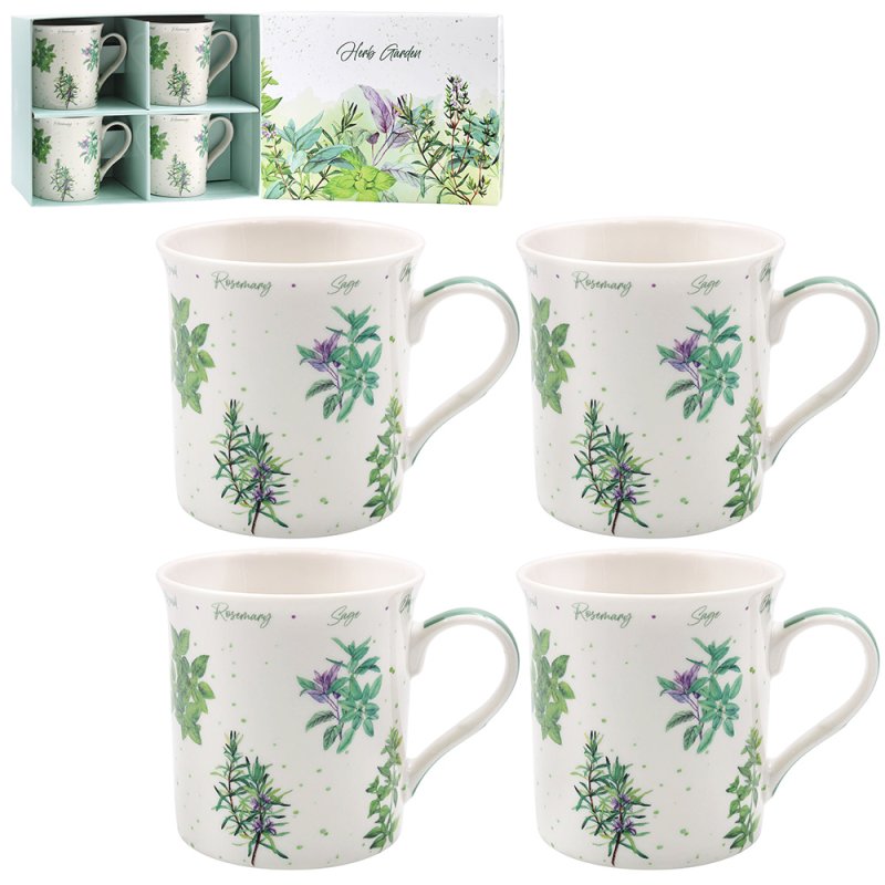 12pc Set Green Herbs Garden Cork Coasters Placemats 230ml Mugs