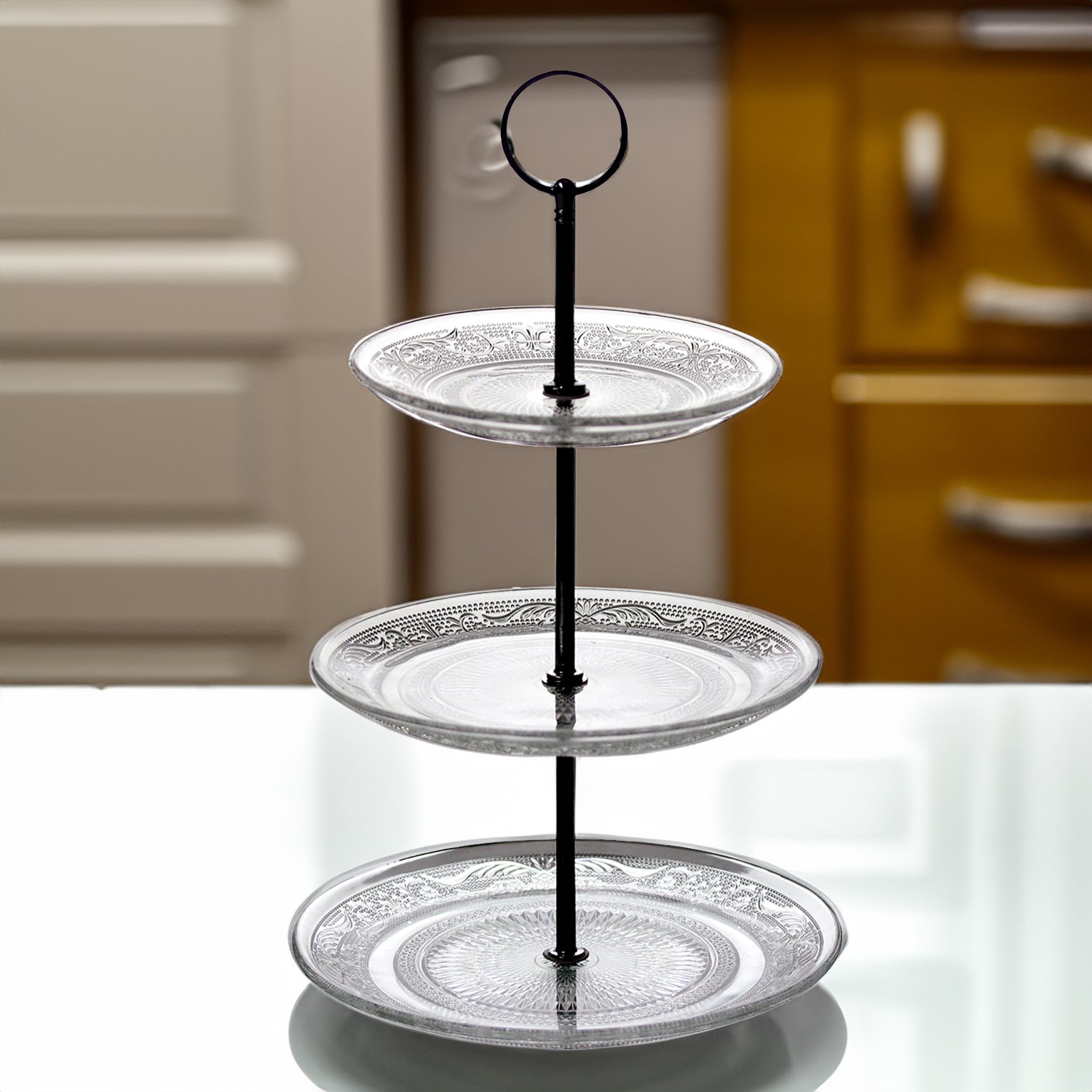 - Three tiers provide ample space to display and serve cakes, pastries, and desserts