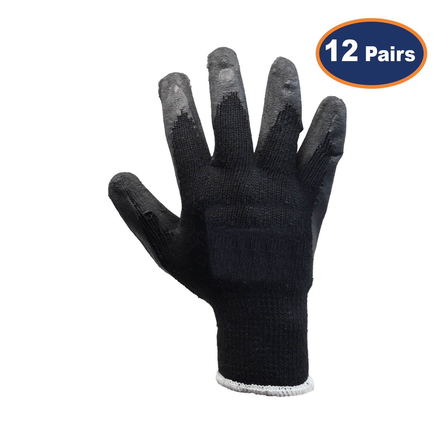 12Pcs X-Large Size Latex Grip Black Protection Glove
