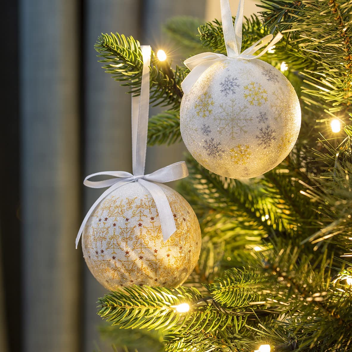 - Each of the 14 individual Christmas baubles measure 7.5cm in circumference, making them the perfect size to sit eloquently yet stand out on your Christmas tree.