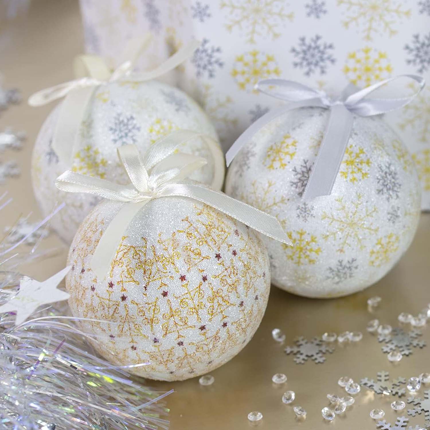 - These Christmas baubles feature beautifully crafted silver & gold snowflakes and icicles that will blend beautifully with your existing Christmas decorations.