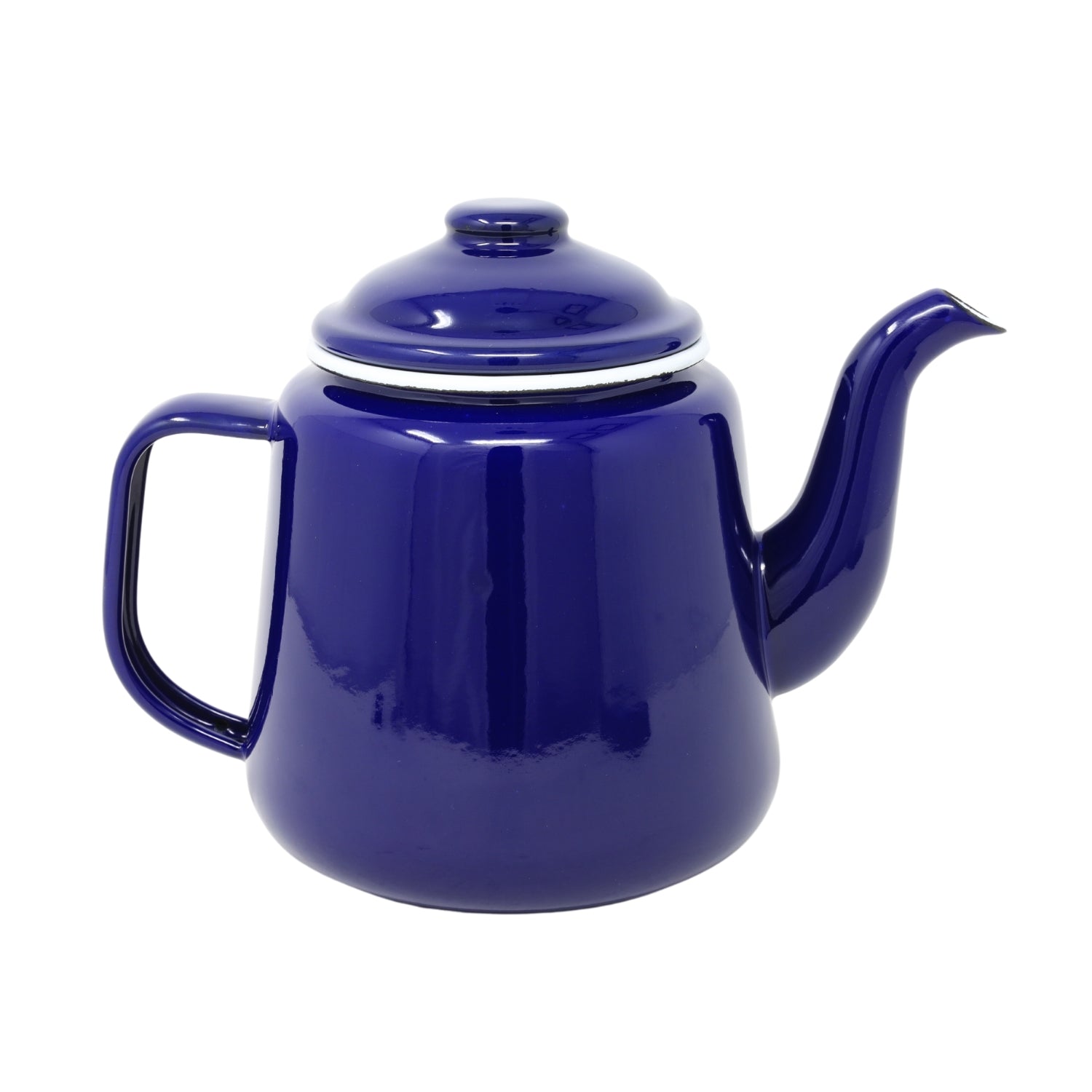 14cm Blue Enamel Teapot with White Rim