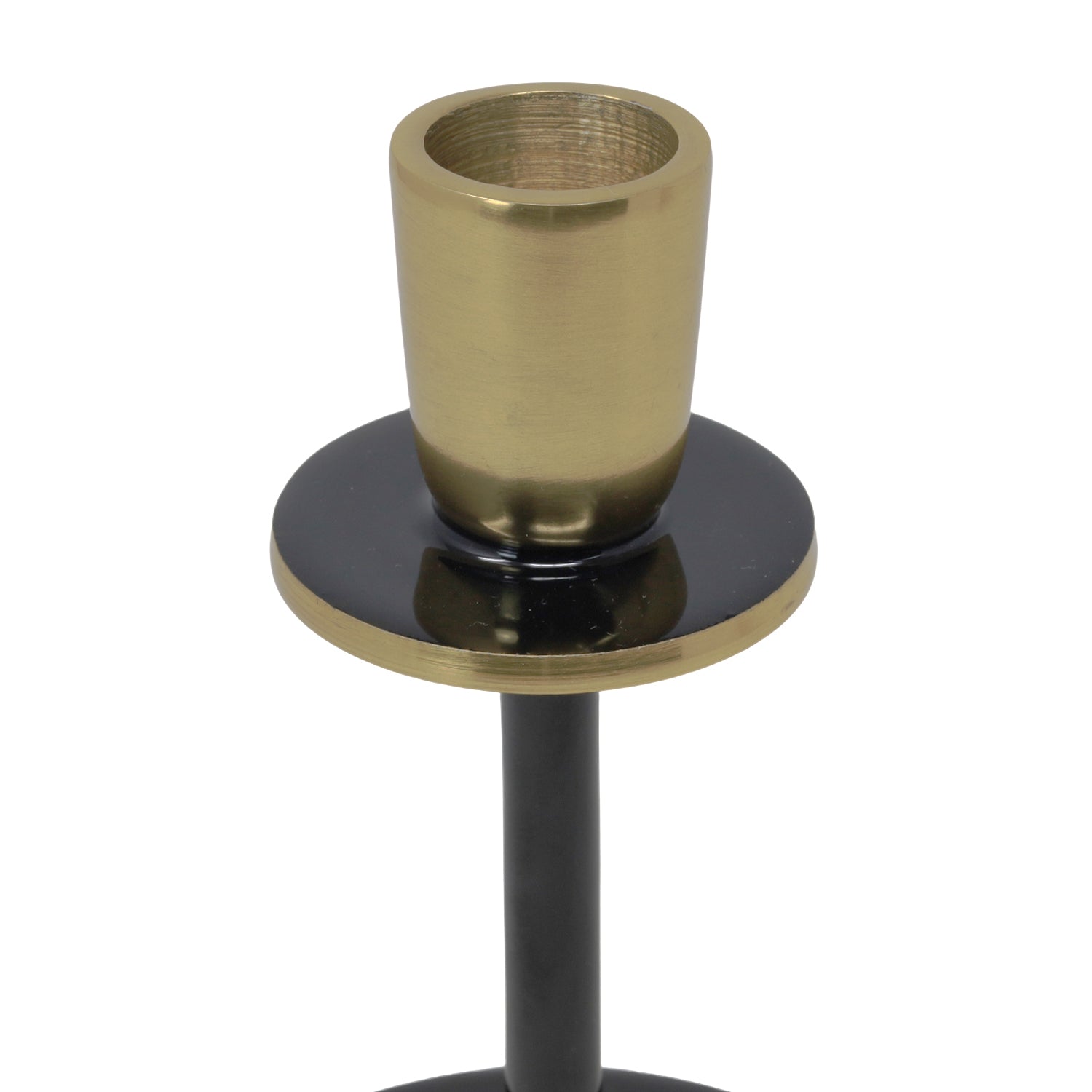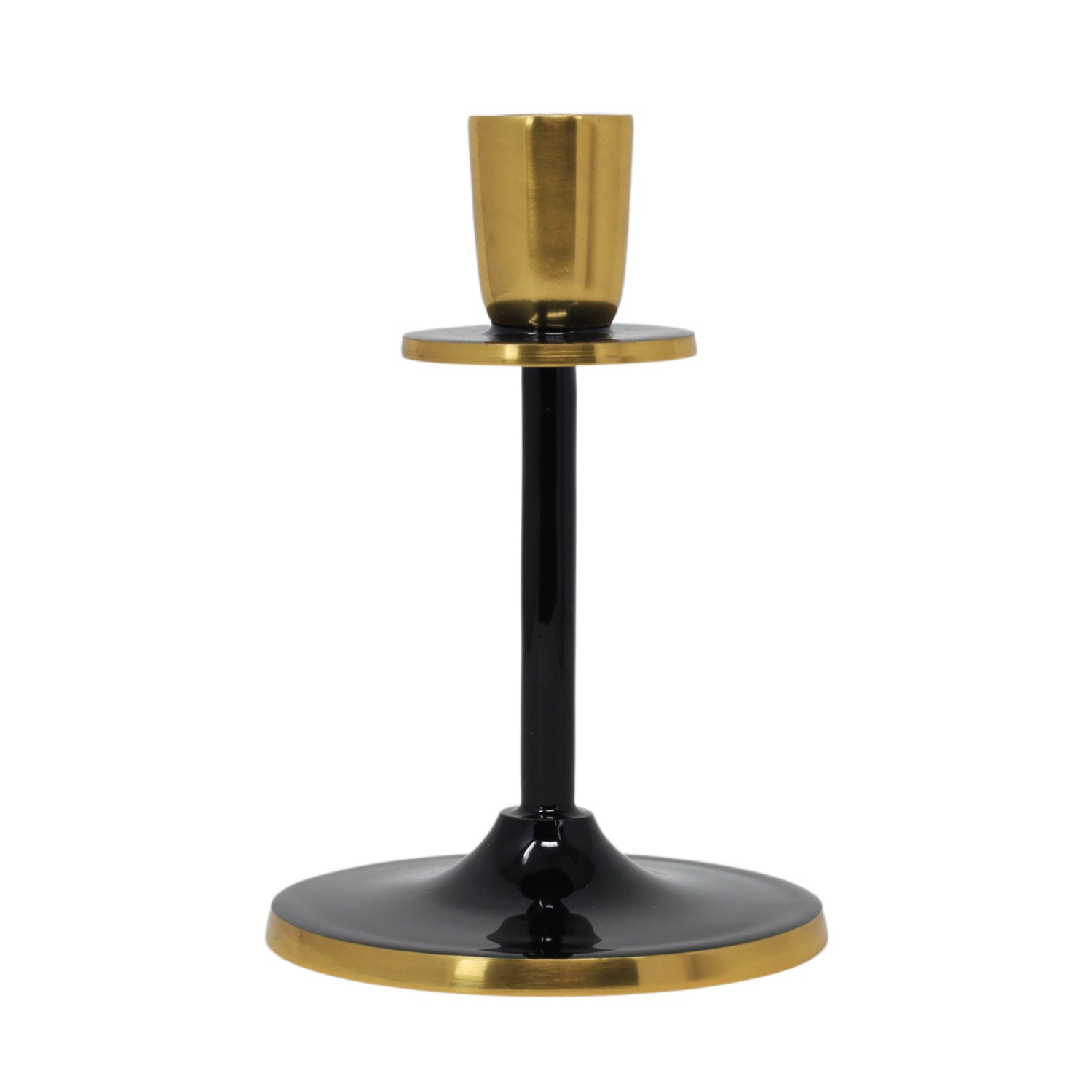 Elegant and modern, this 15cm metal candlestick combines style and durability to elevate any space. With a sleek black and gold finish, it brings sophistication to tables, mantels, or shelves, adding a warm glow and a touch of class to your decor. Ideal for holding taper candles, this piece seamlessly complements both contemporary and classic settings.