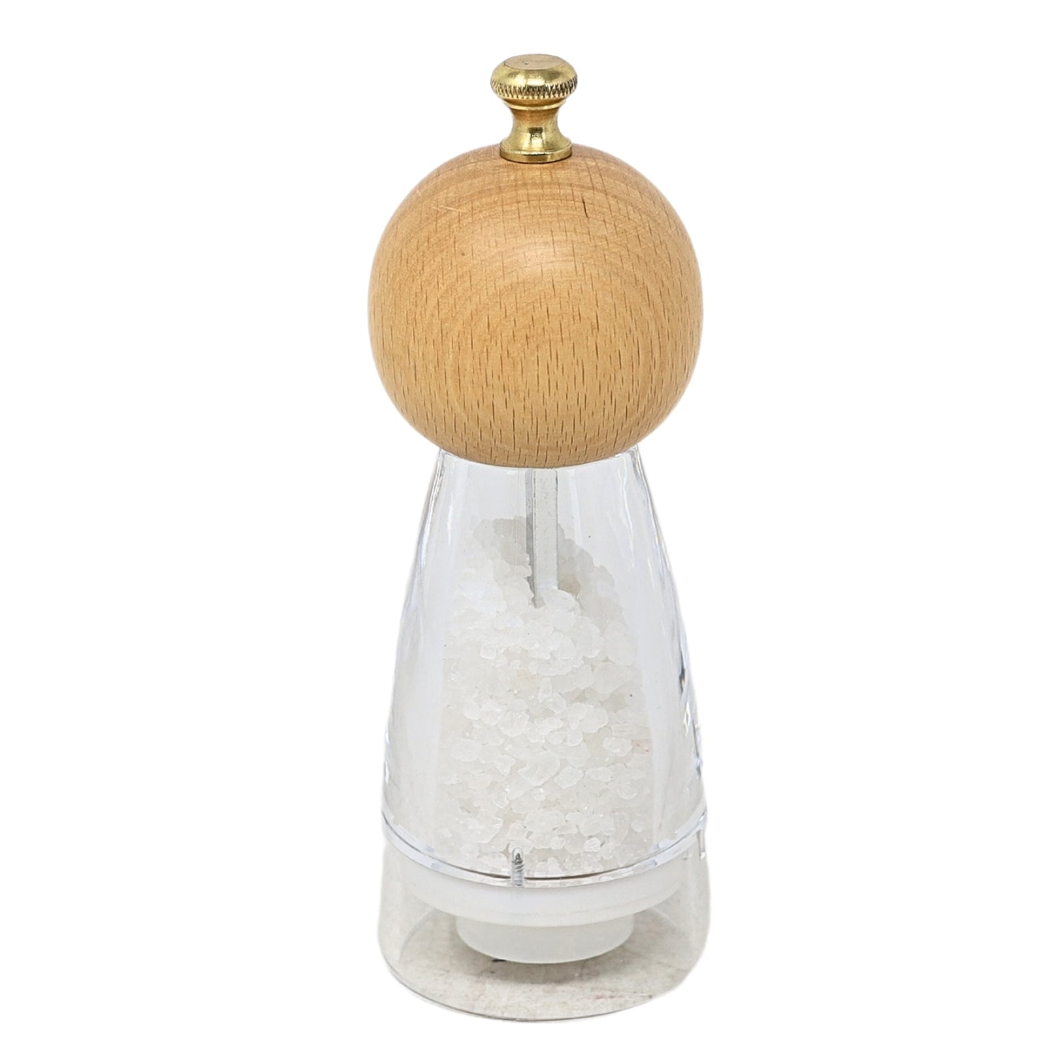 Elevate your dining table with the 17cm acrylic beech salt and pepper mill set, where style meets performance for an enhanced culinary experience. The transparent acrylic body combined with a beechwood top creates a stylish & contemporary appearance, making it an attractive addition to your kitchenware collection. The adjustable grinding mechanism lets you customize the coarseness of your spices to perfection.