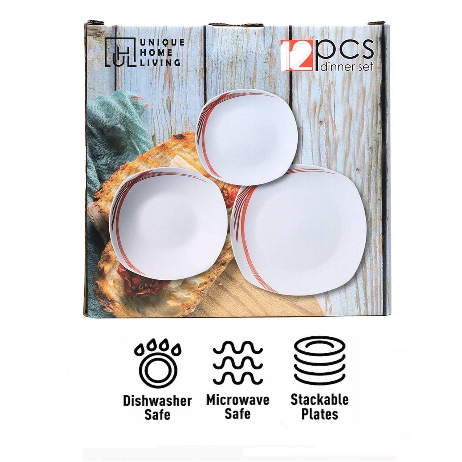 Enhance your tableware collection with the Unique Home Living 19cm Side Plate. Made of durable porcelain and finished with a smooth glaze, this rounded square plate in white is beautifully decorated with red curved lines for a clean, modern touch. Ideal for serving side dishes or desserts, it’s microwave and dishwasher safe, and conveniently stackable to save cupboard space.