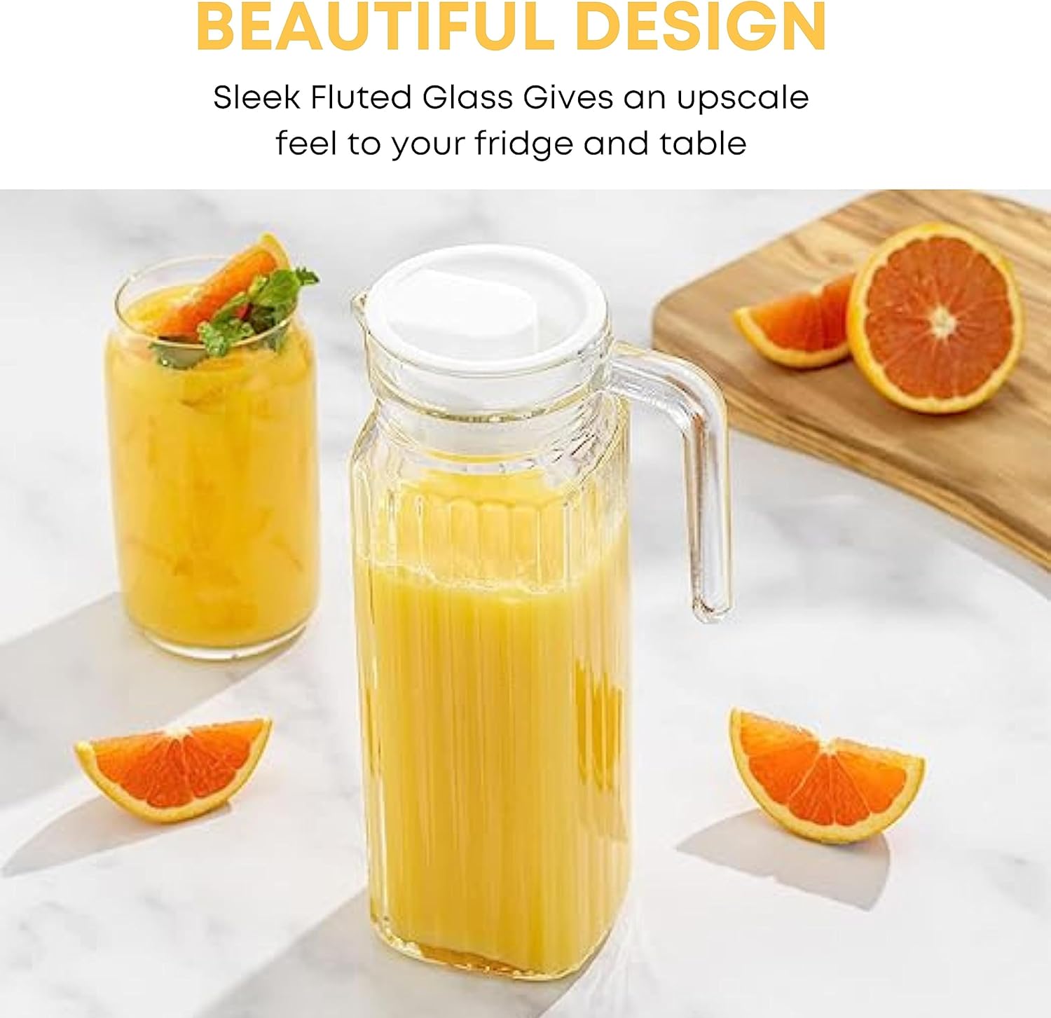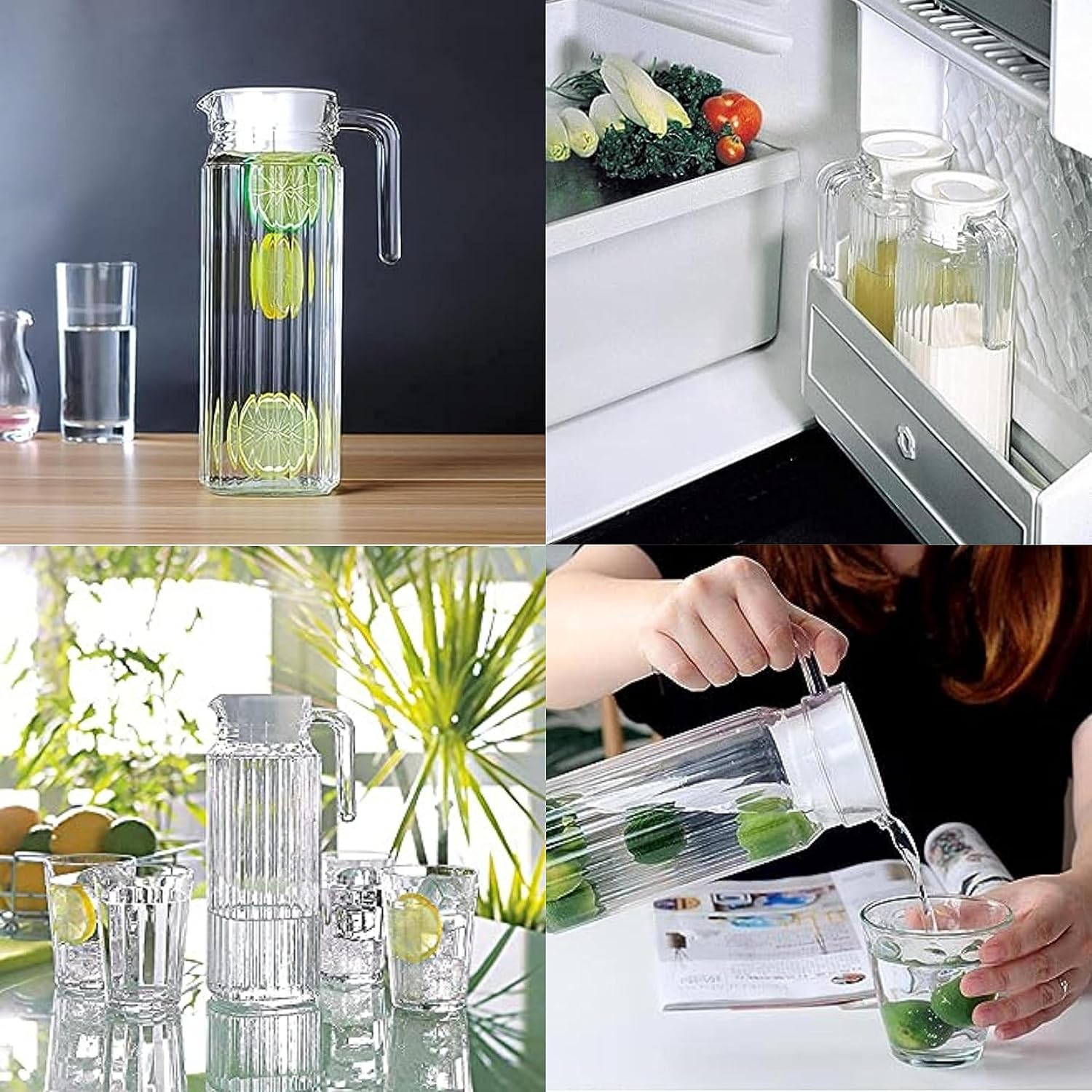 1L Clear Glass Water Pitcher Fridge Jug w/ Lid