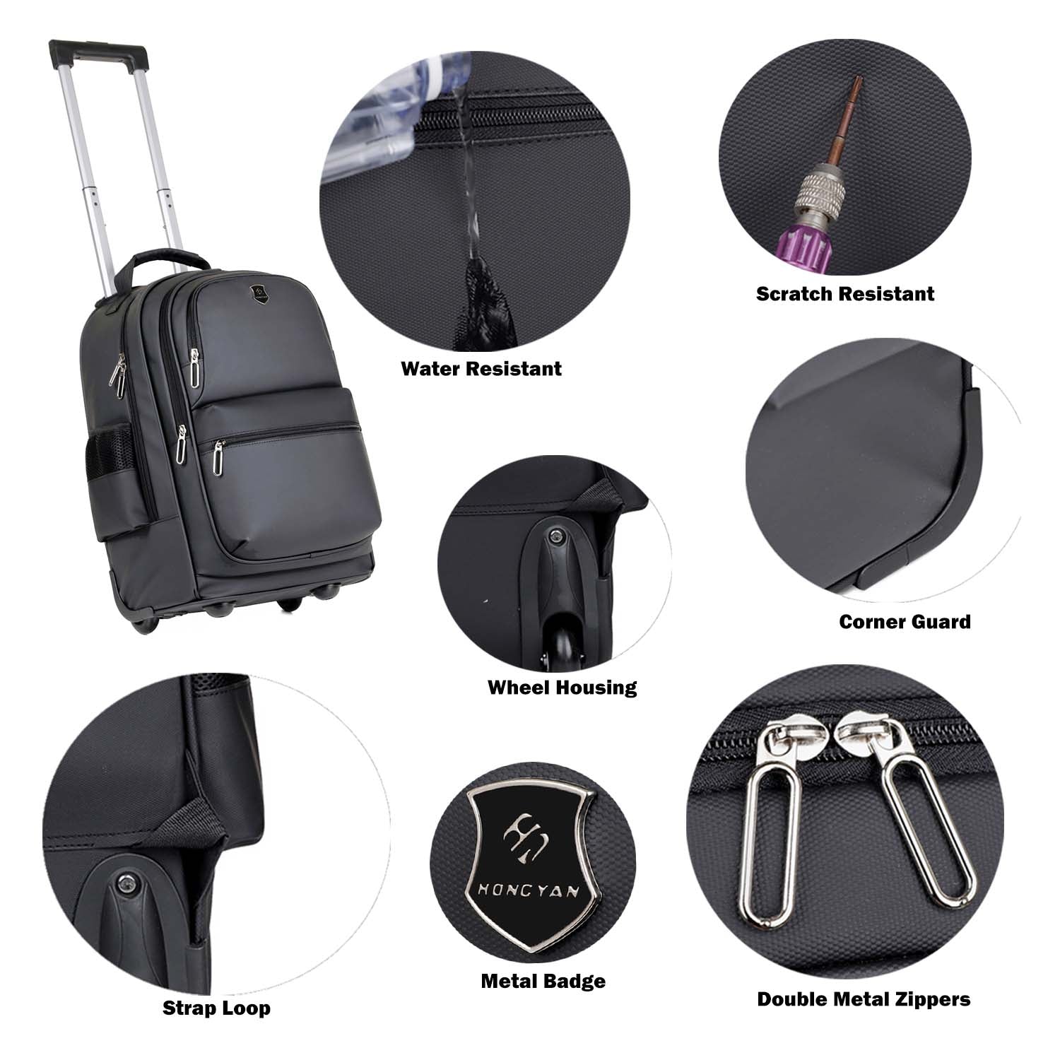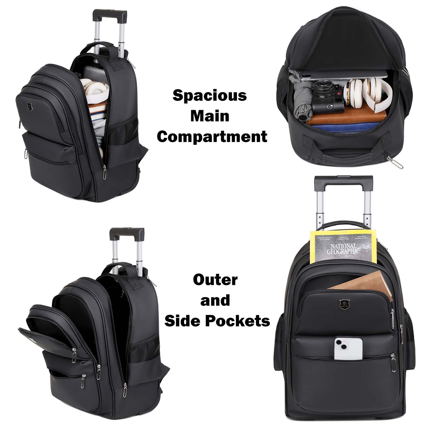 2-in-1 Rolling Trolley Black Backpack with Extendable Handle