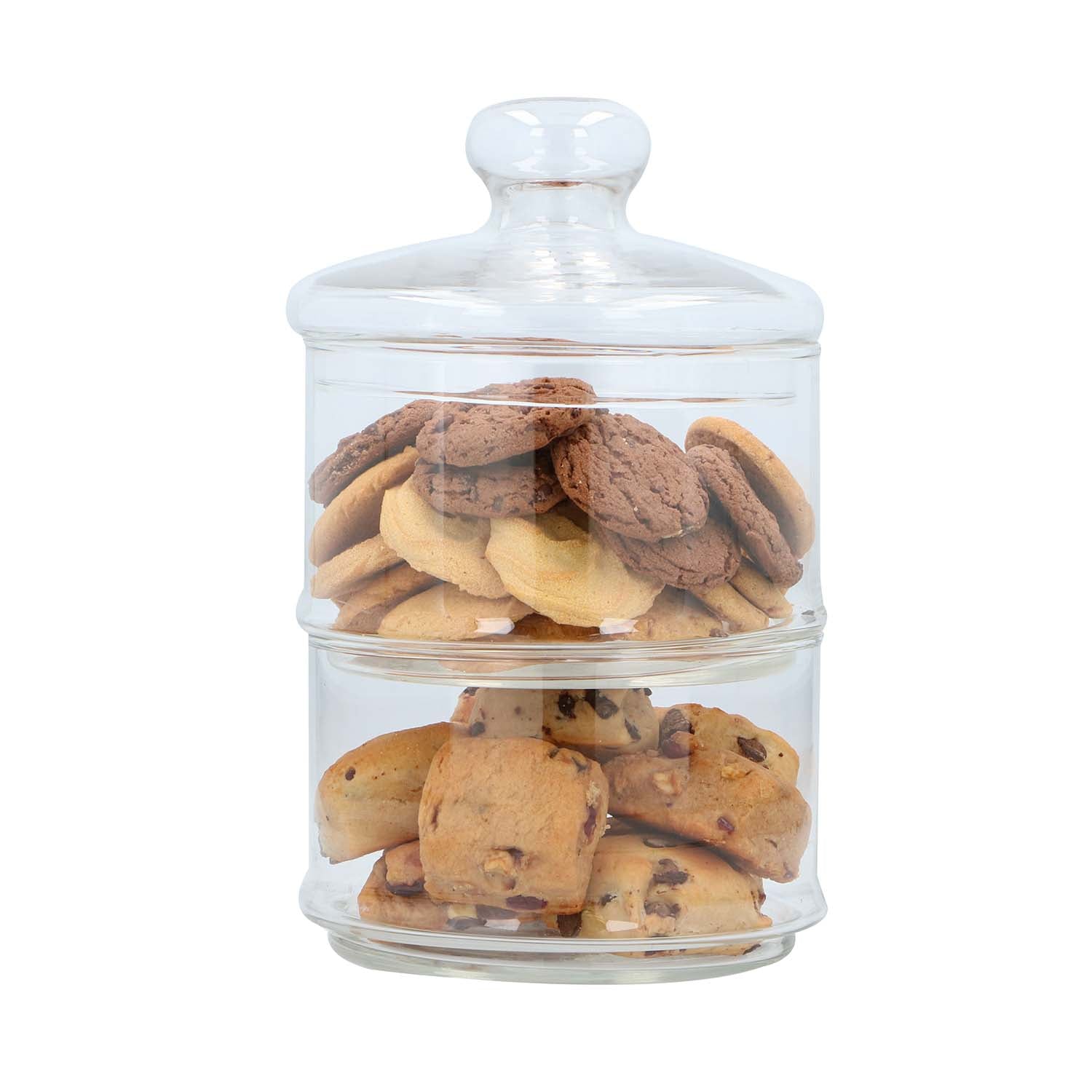 2 Tier Clear Glass Stackable Storage Jars With Lid