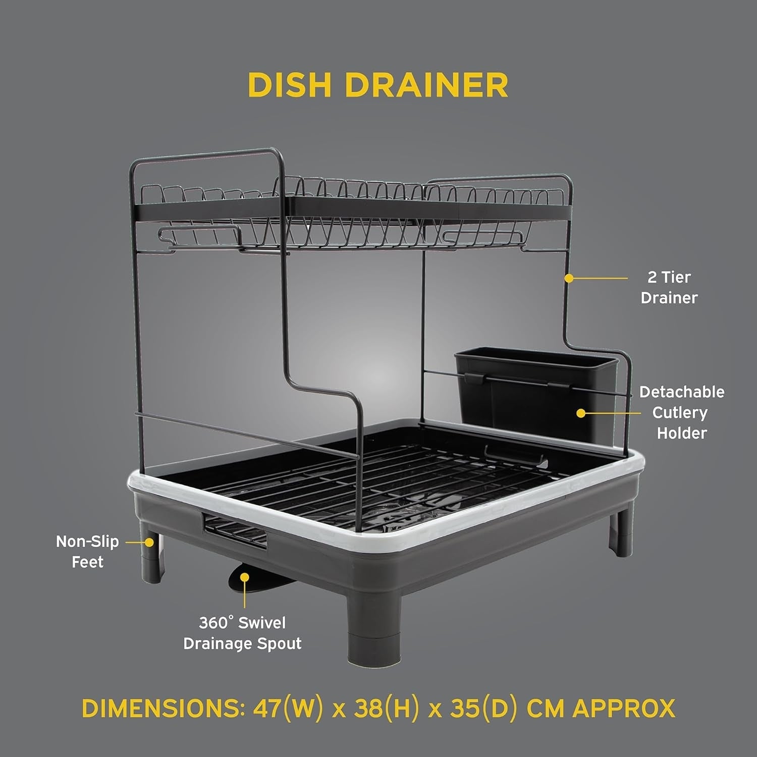 Upgrade your kitchen with the stylish and practical Blackmoor 2-Tier Dish Drainer. The two-tier layout allows you to separate plates and cups neatly, while the removable drip tray and cutlery holder make cleaning effortless. Ideal for busy households, this drainer blends functionality with a modern, space-saving design.