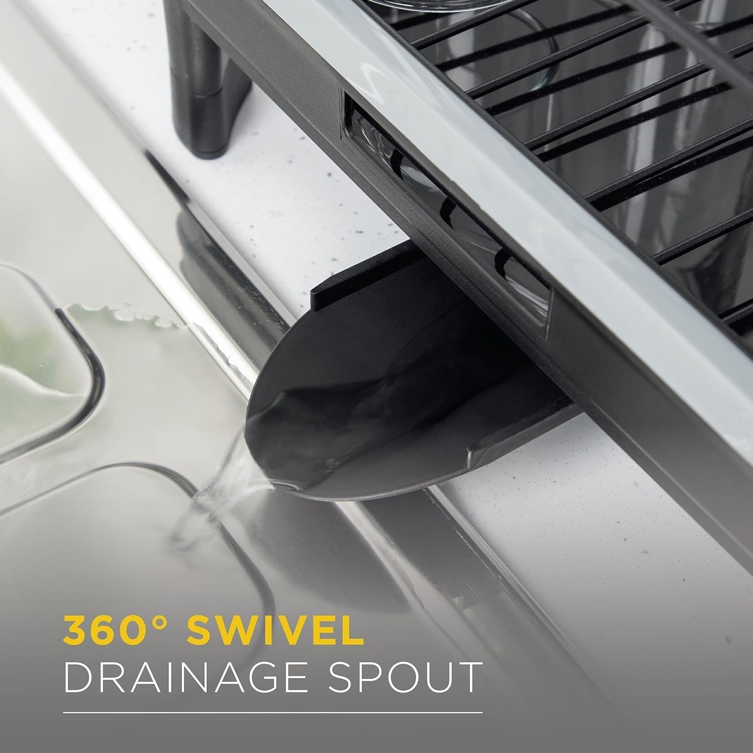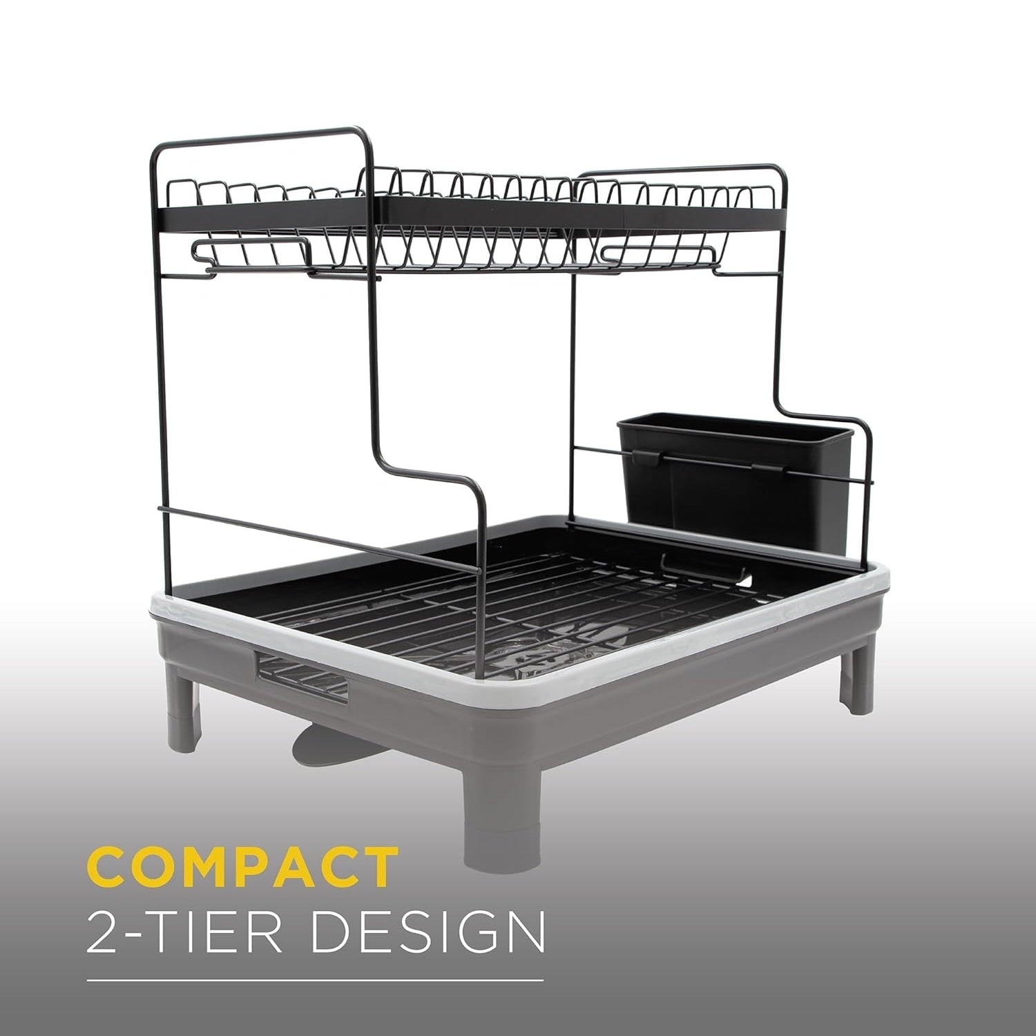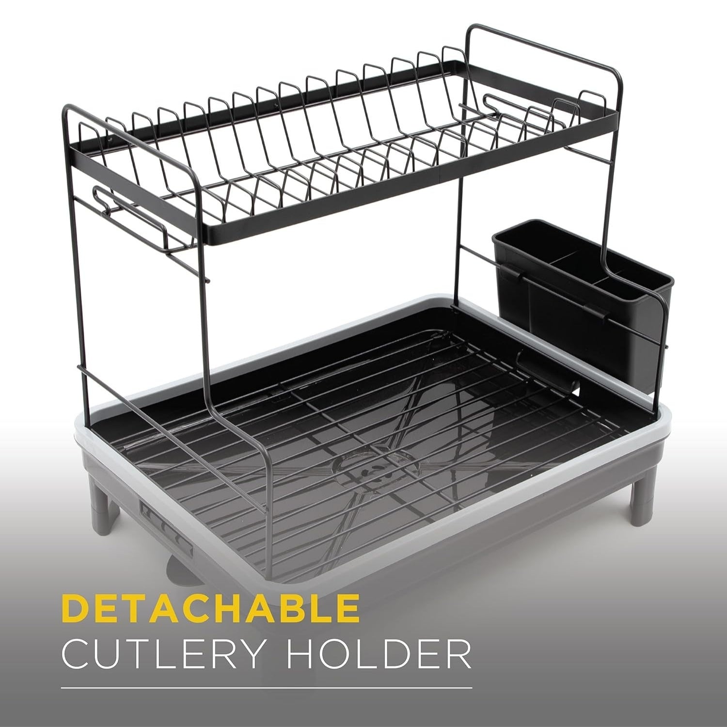 2 Tier Iron with Cutlery Holder Removable Tray Black Dish Drainer Rack