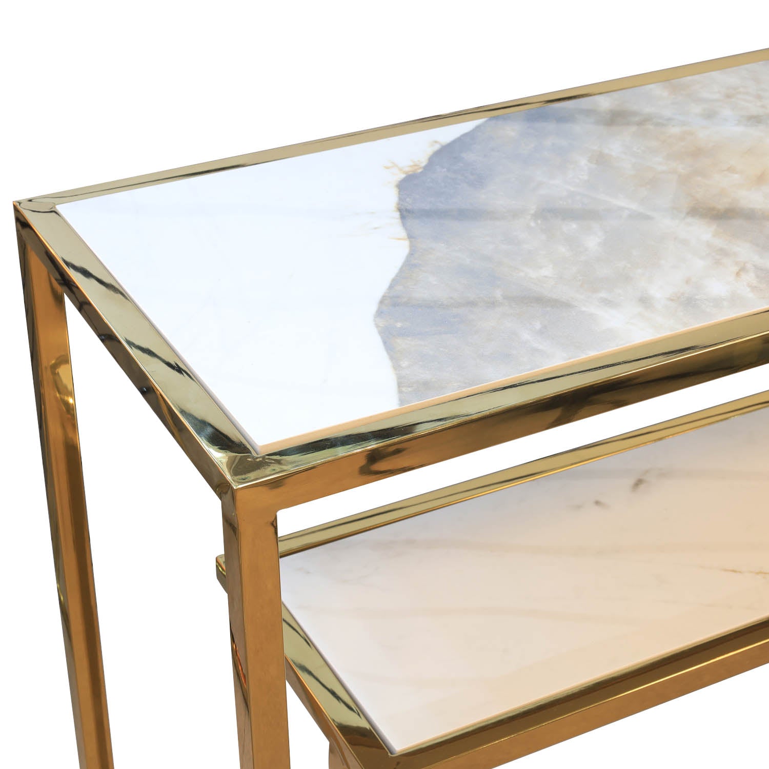 2 Tier Sintered Stone Gold Finish Frame Console Table