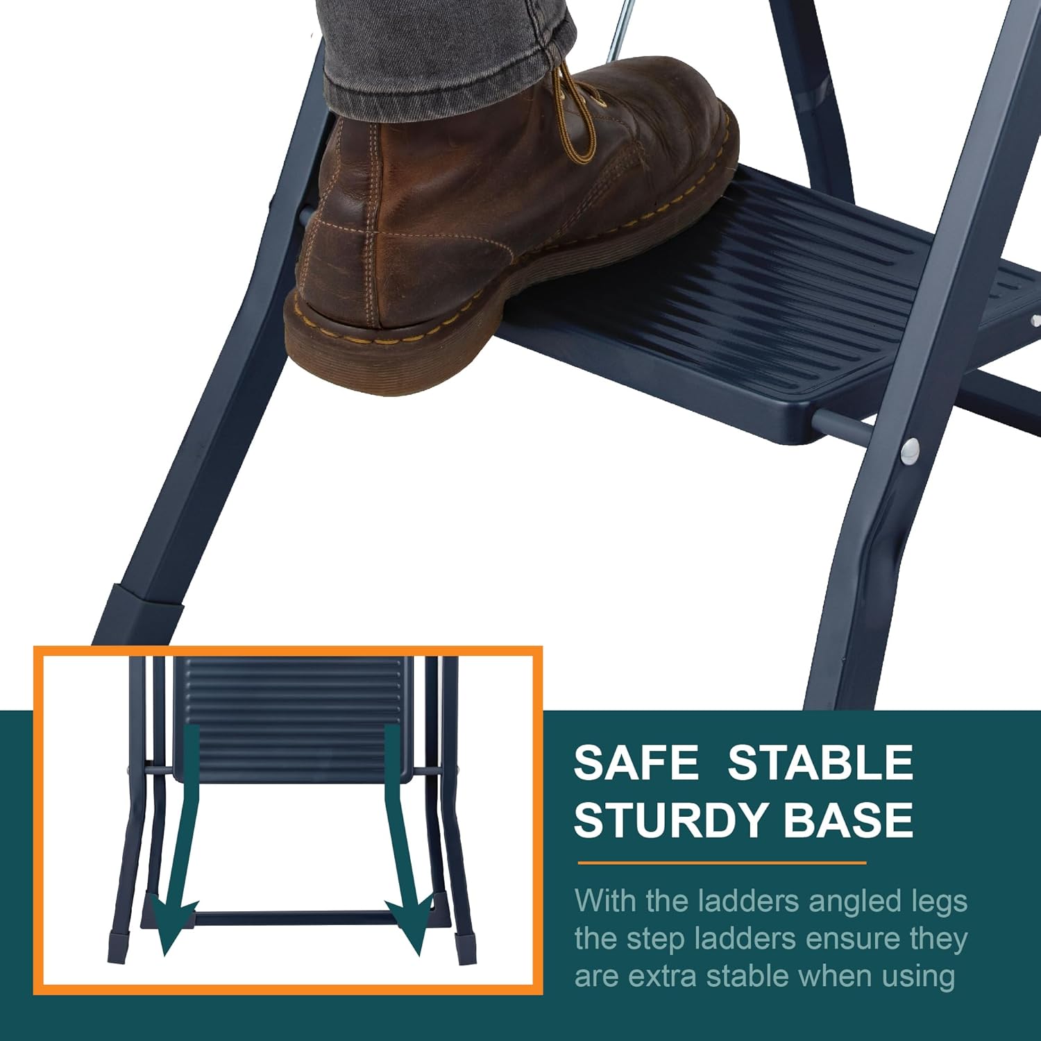 2-Tread Step Rubber Non-Slip Sturdy Alloy Frame Ladder