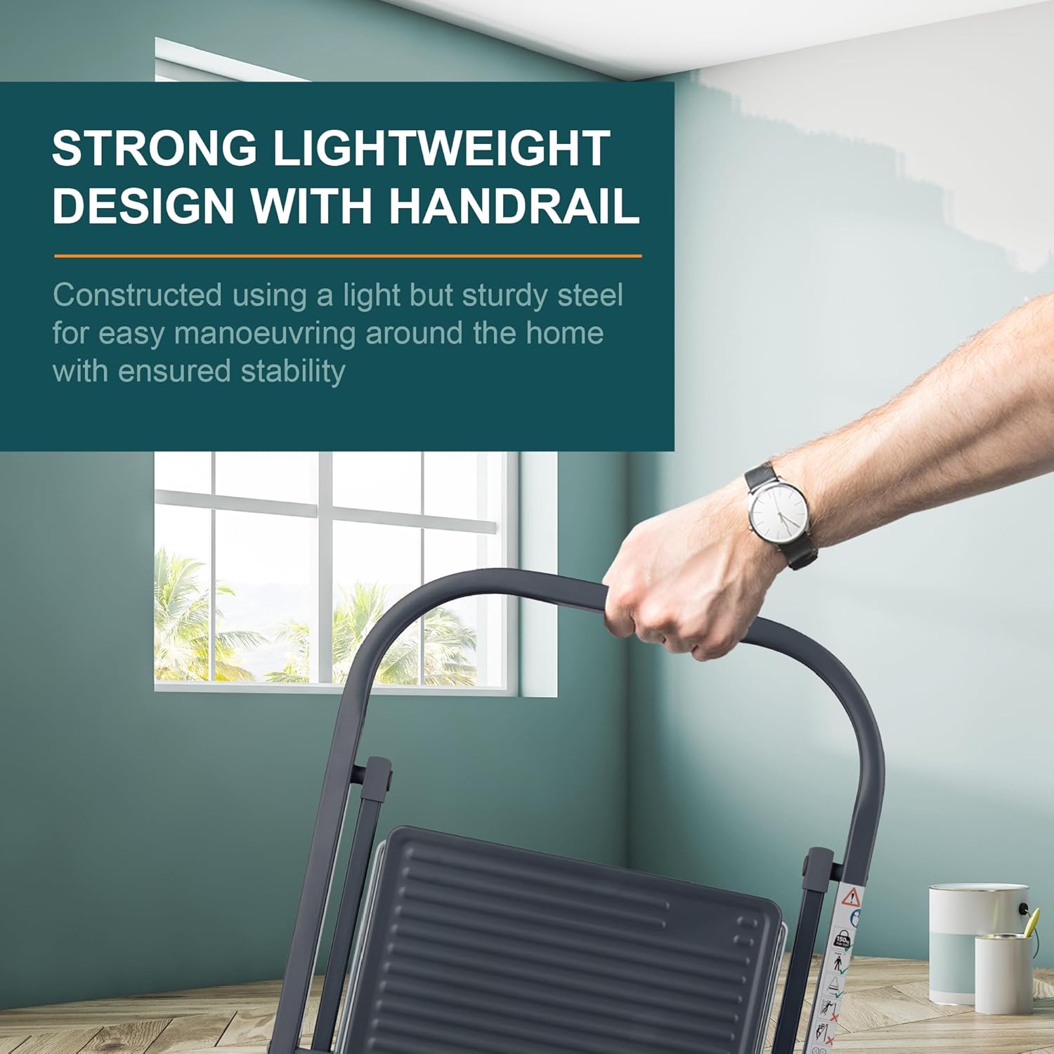 This two-tread step ladder combines practicality and safety in a compact design. Its lightweight construction and folding mechanism make it easy to carry and store when not in use. Whether you're painting, decorating, reaching high shelves, or working in the garden, this ladder is a reliable and space-saving helper for any home or workspace.