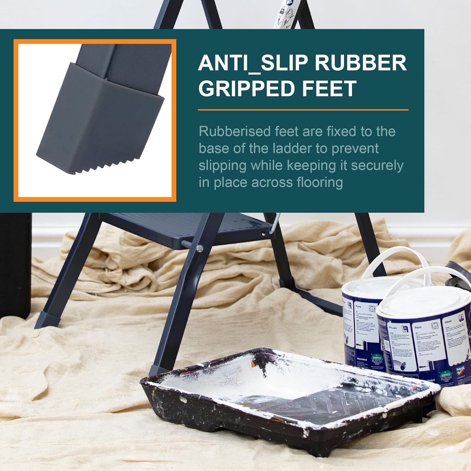 - Rubberised feet are fixed to the sturdy base of the ladder to prevent slipping while keeping it securely in place across flooring.