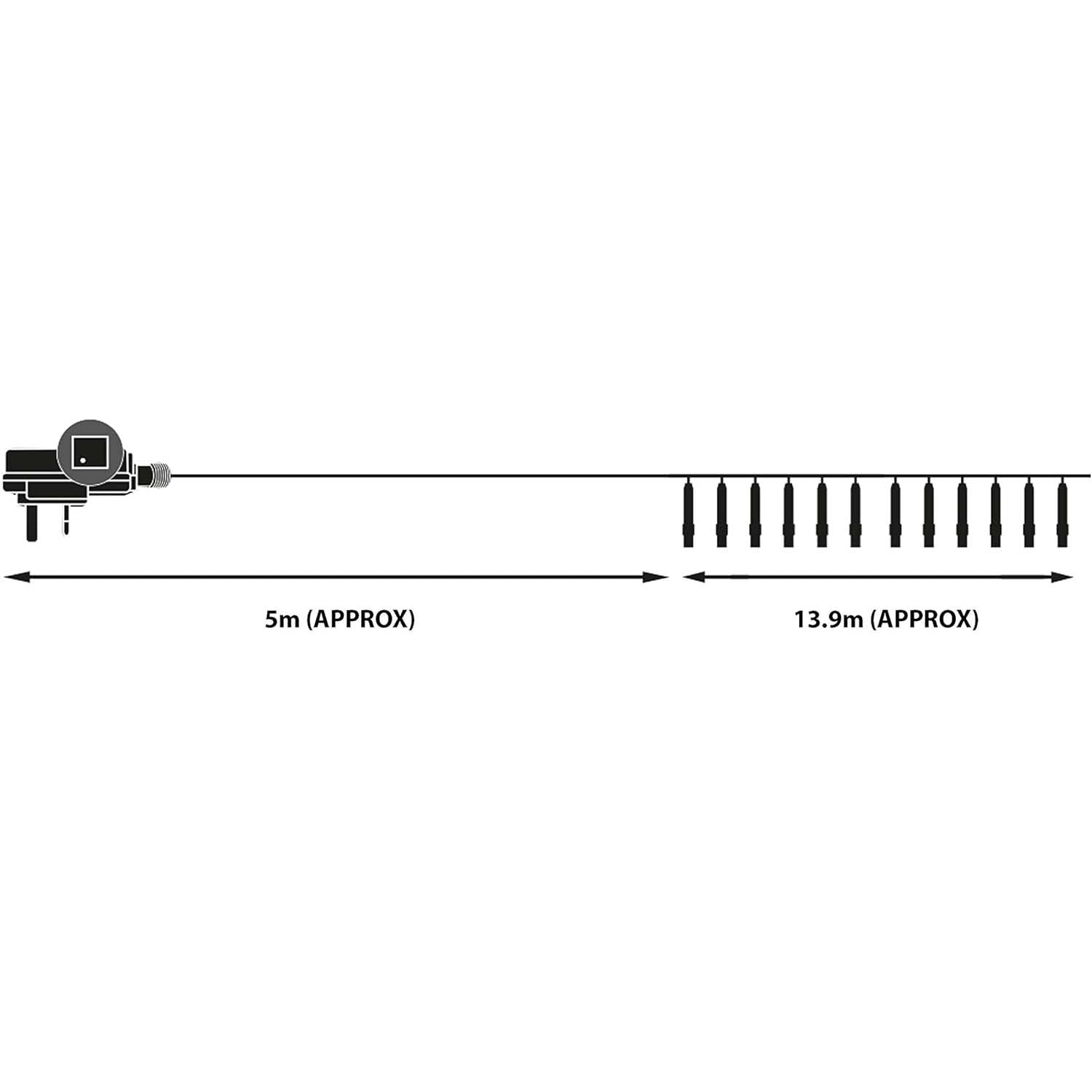 200 warm white chaser lights with ultra bright LED. These Christmas lights use LED bulbs which are energy efficient and are long lasting. Can be used indoor or outdoor and are fitted with 8 mode sequence control unit.This light set can be used as an indoor or outdoor decoration but please ensure that the transformer and control box remain indoors and not in wet and damp or excessively humid conditions.Chaser light modes: combination, sequential, chaser flashing, twinkle flashing, waves, slow glow, slow fade or steady on.Approximate cable length from transformer to first bulb: 5 metres. Light length approximately 13.9 metres / combined length 18.9 metres. Non replaceable LED lights. Complete with indoor use transformer. Transformer rated voltage and wattage: 31V 4VA.