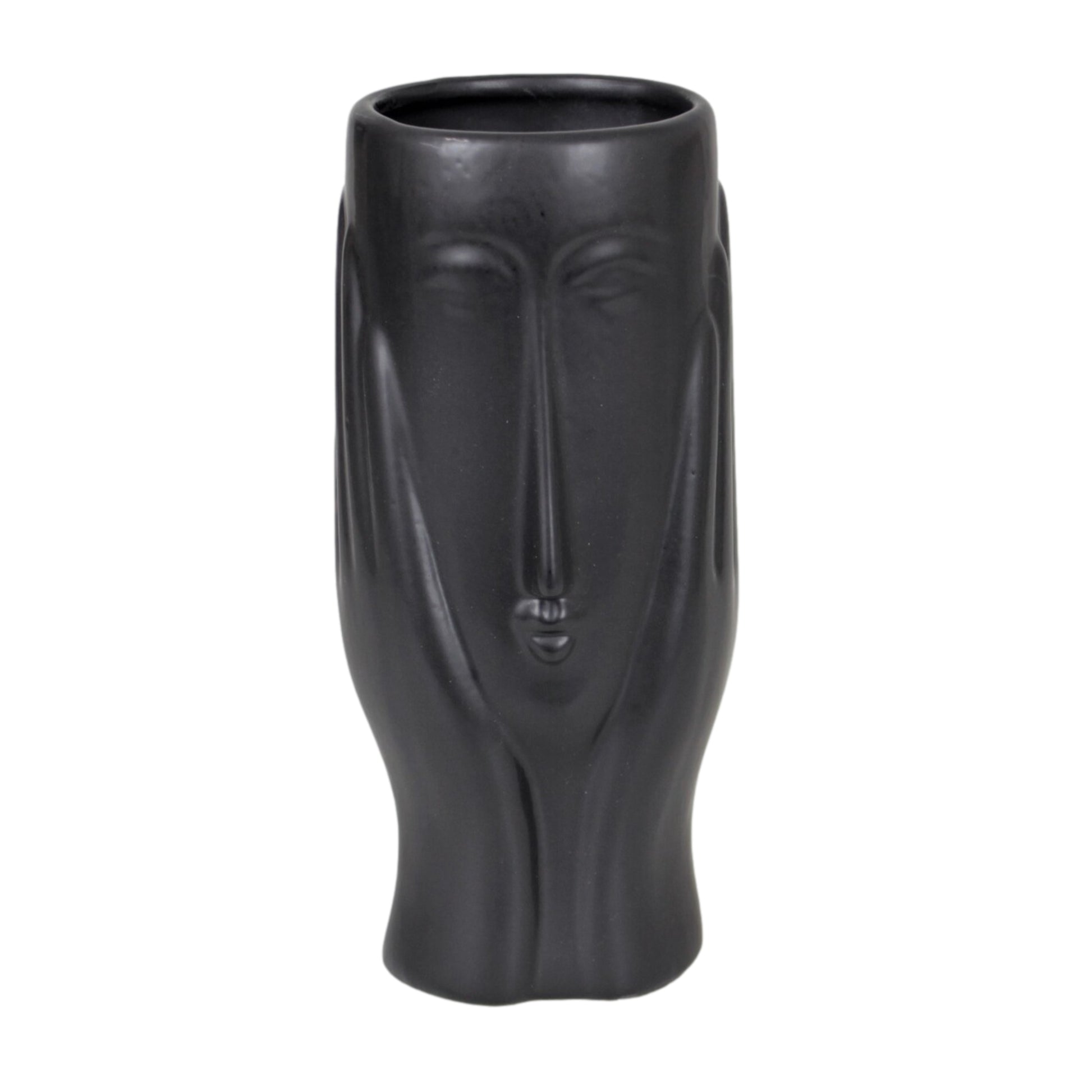 20cm Black Ceramic Face Hands Cache Herbs Planter Vase
