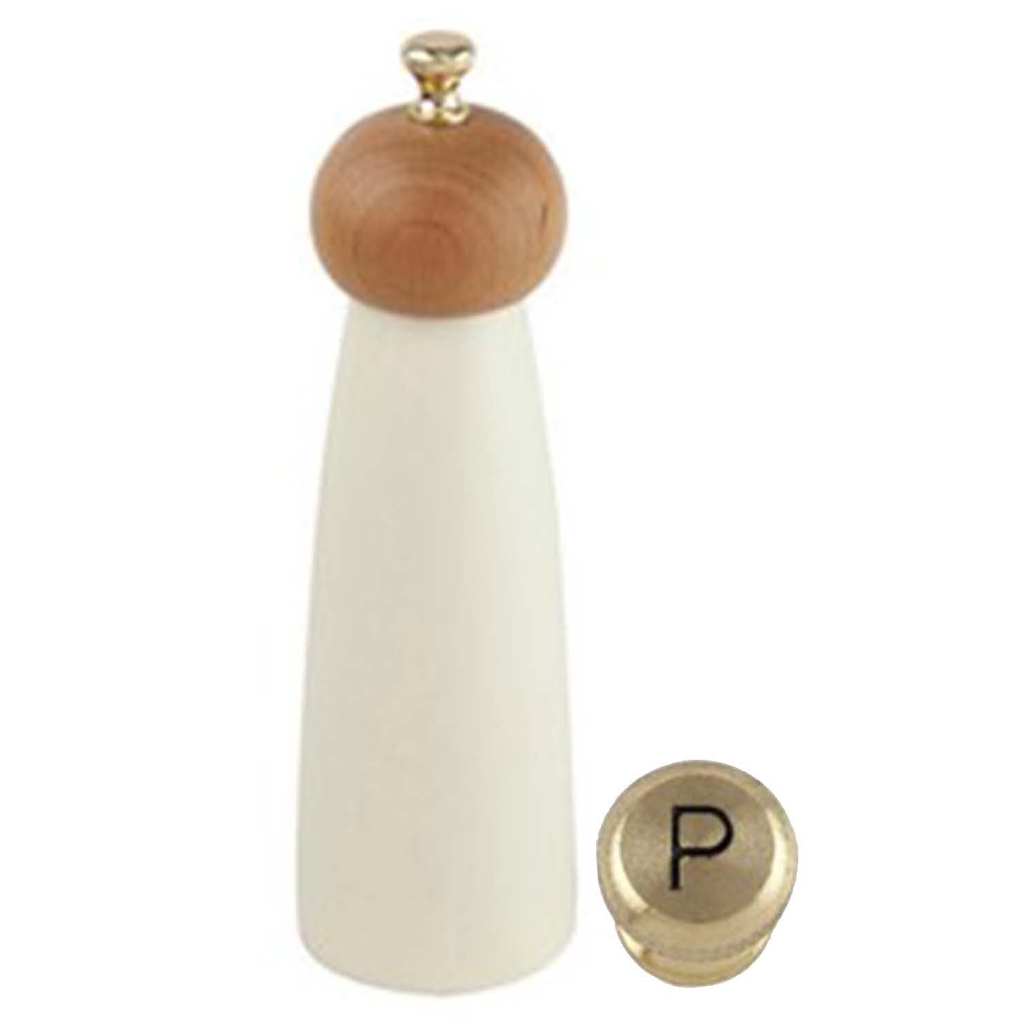 - A golden adjustable knob, adorned with the letter "P" making it easy to identify as the pepper mill.