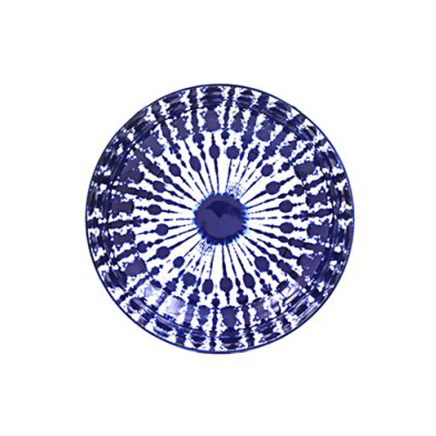 - Round 22cm bowl featuring a bold tie-dye inspired blue and white pattern for a modern artistic look.