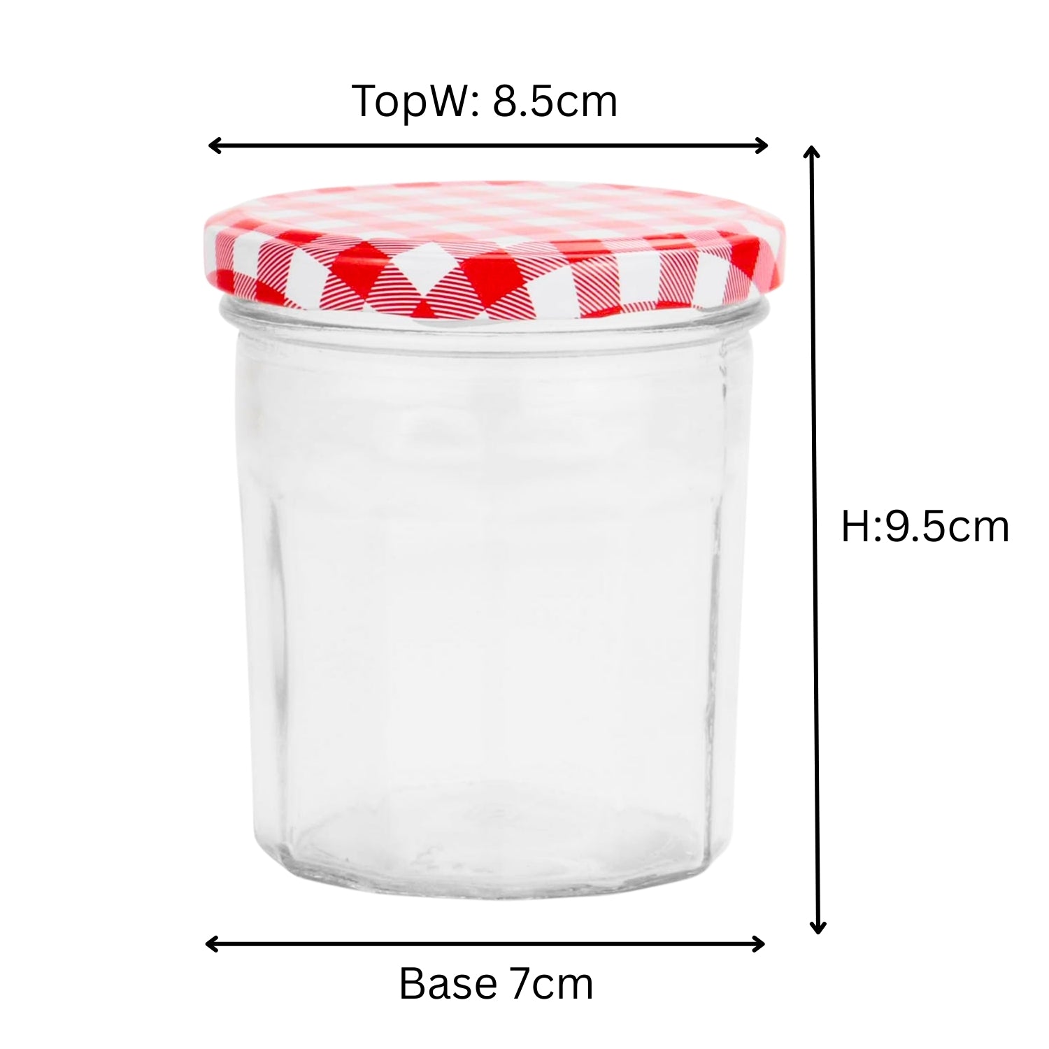 Bring a touch of charm to your kitchen storage with this 24pc Glass Jam Jars Set. Each jar is made from high-quality clear glass with a classic red checkered twist-off tin lid, combining functionality with rustic farmhouse style. With a 300ml capacity, these jars are ideal for homemade jams, chutneys, honey, sauces, or dry pantry goods. The airtight seal helps lock in freshness, while the reusable and eco-friendly design makes them perfect for gifting, crafts, and everyday storage. A stylish and practical addition to any kitchen.