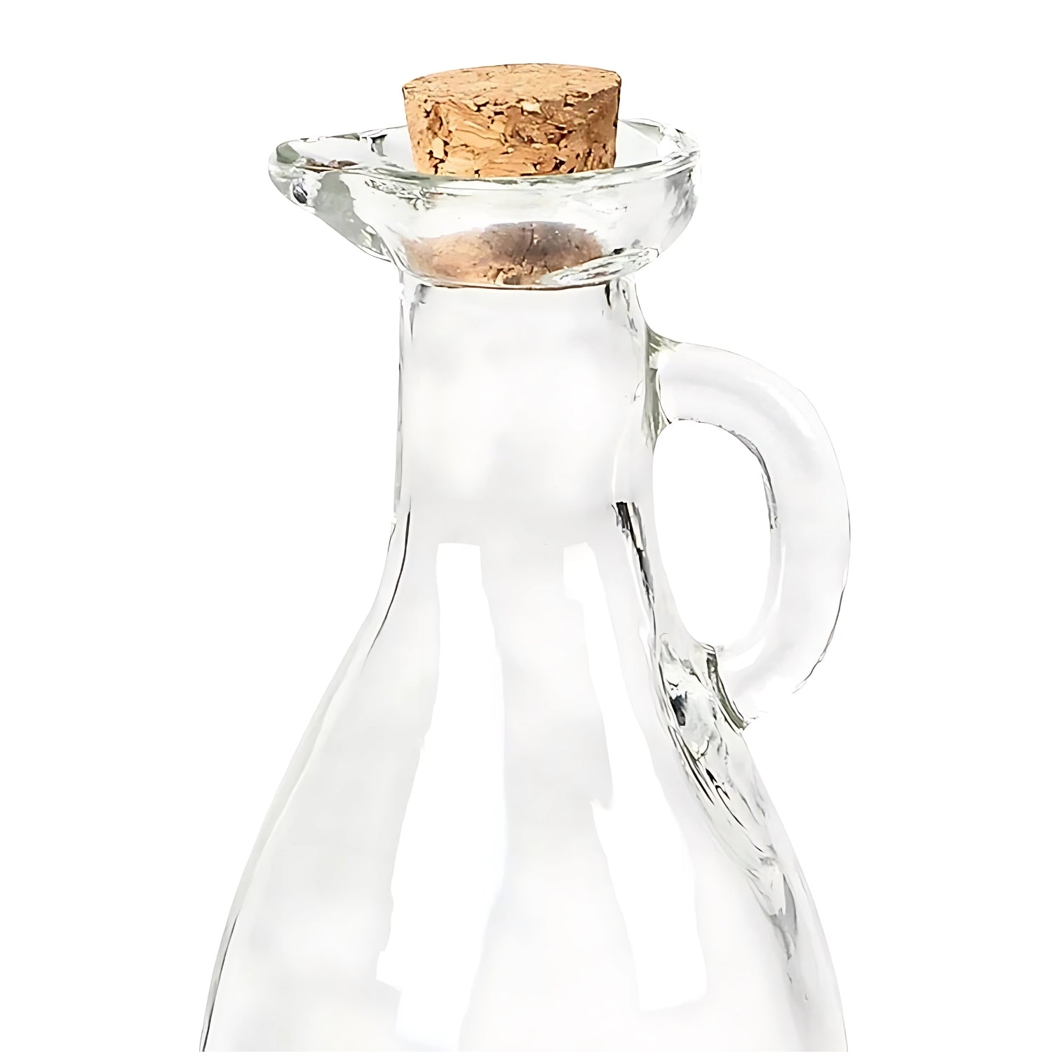 - Bulbous in shape with a minimalist design; features a natural cork lid and integrated pourer spout.