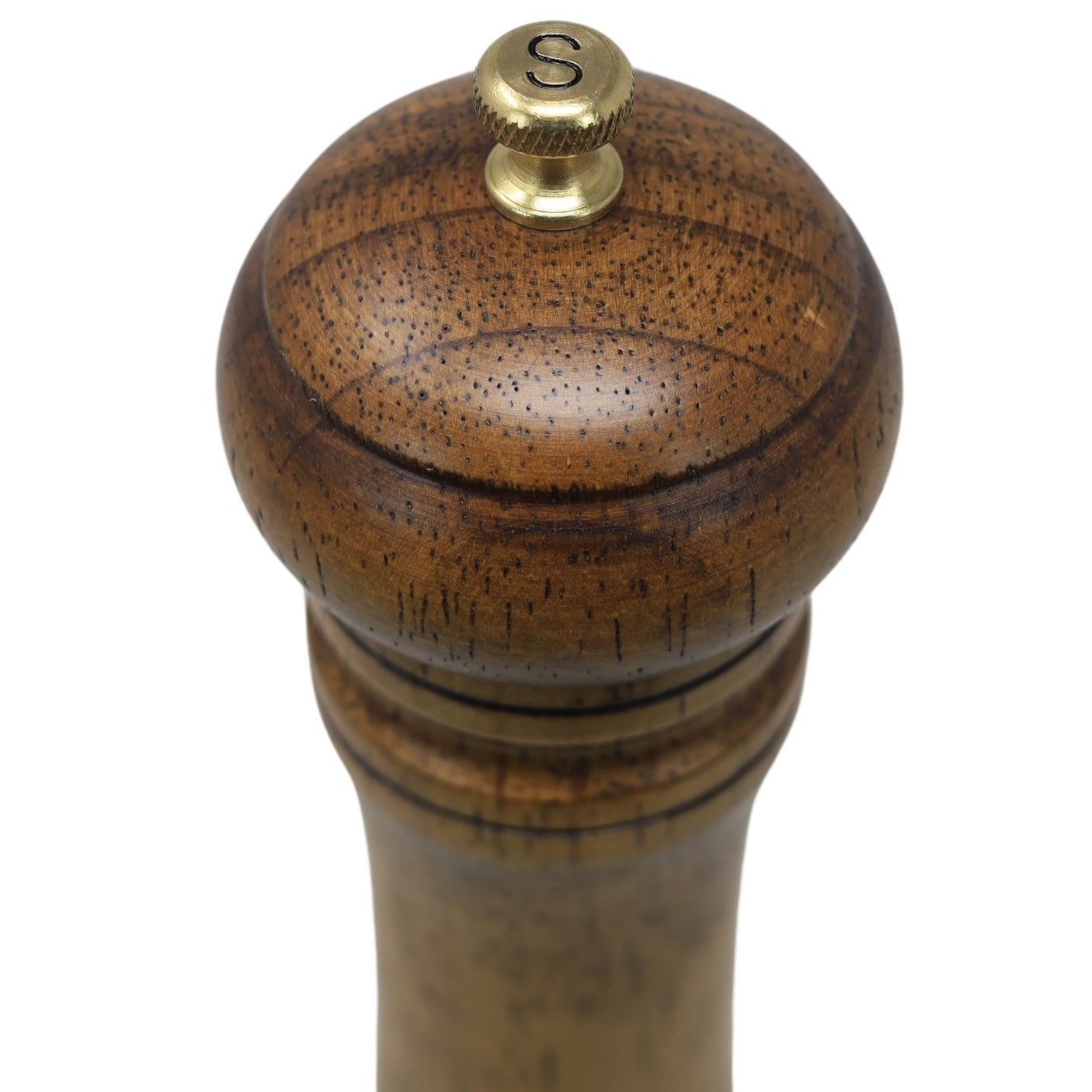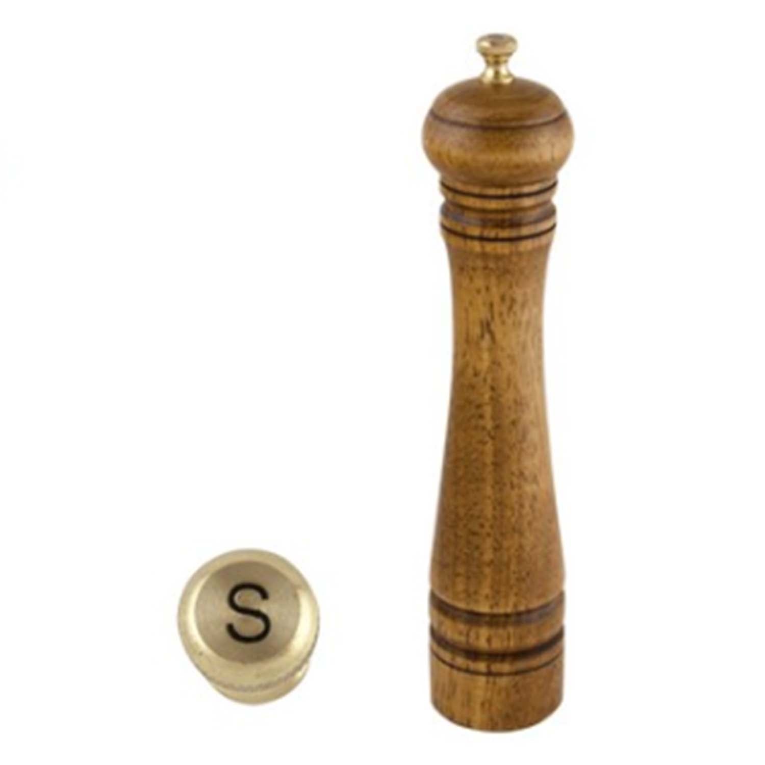 - A golden knob, adorned with the letter "S," making it easy to identify as the salt mill.