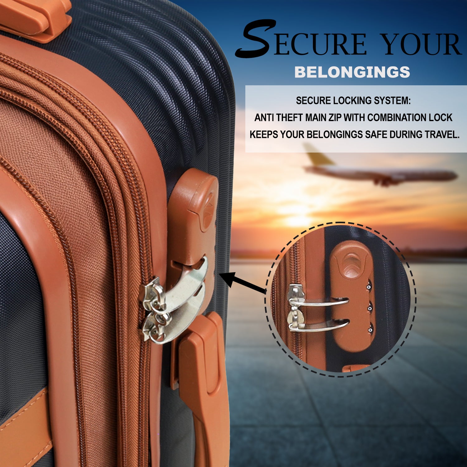 - Secure Locking System: Anti theft main zip with combination lock keeps your belongings safe during travel.