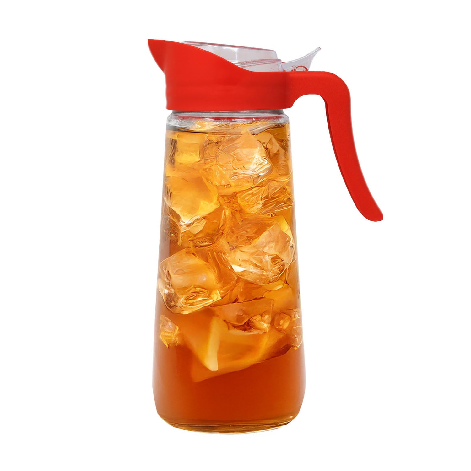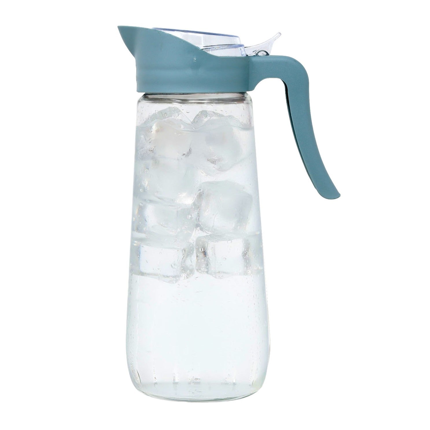 Serve your favourite drinks in style with this 1.6L Clear Glass Pitcher set featuring a 2-piece drinkware, each with a round body and a durable plastic lid, pourer, and handle in assorted colour variations (grey, blue, red - random colour sent). Ideal for water, juice, iced tea, and more—an essential for any kitchen or dining table.