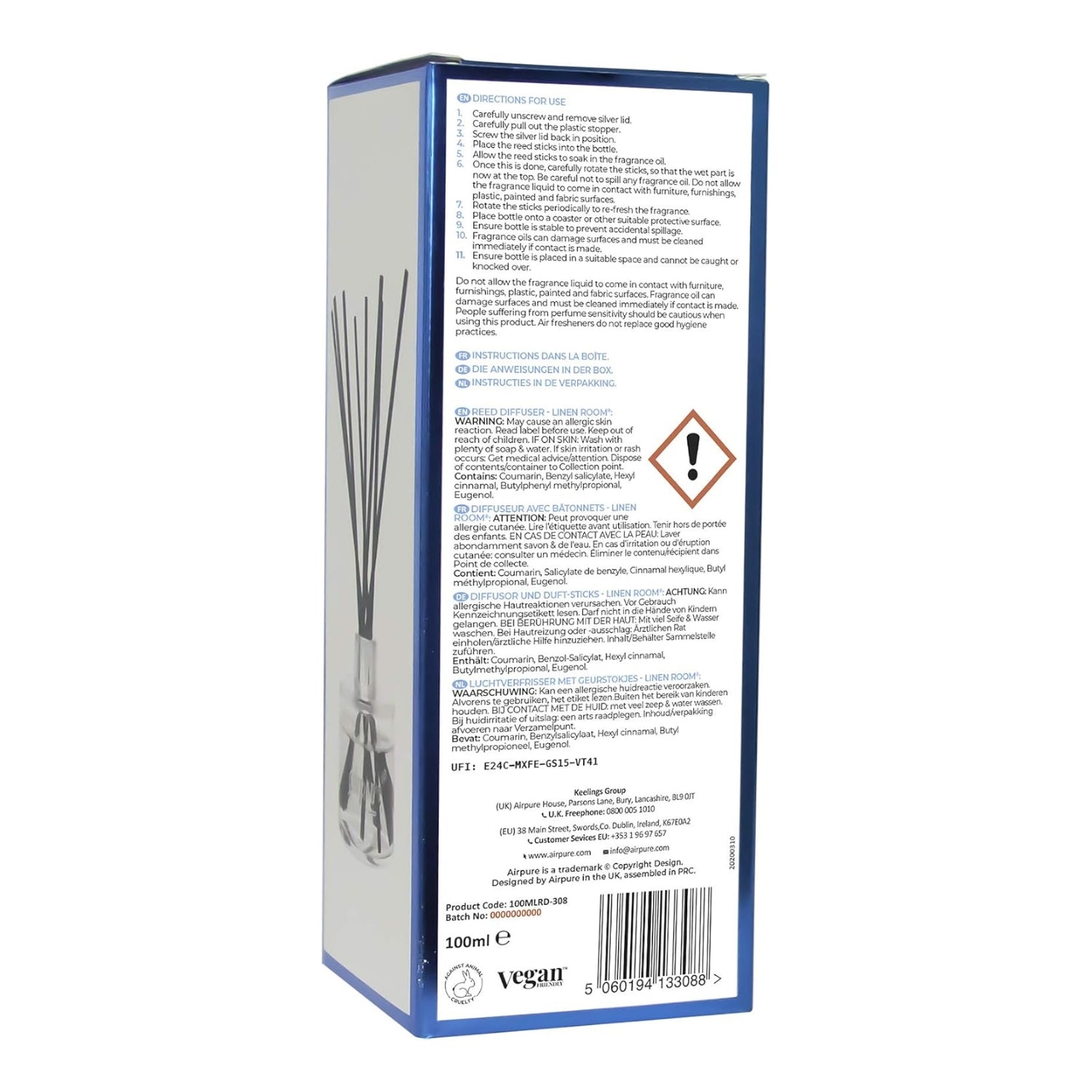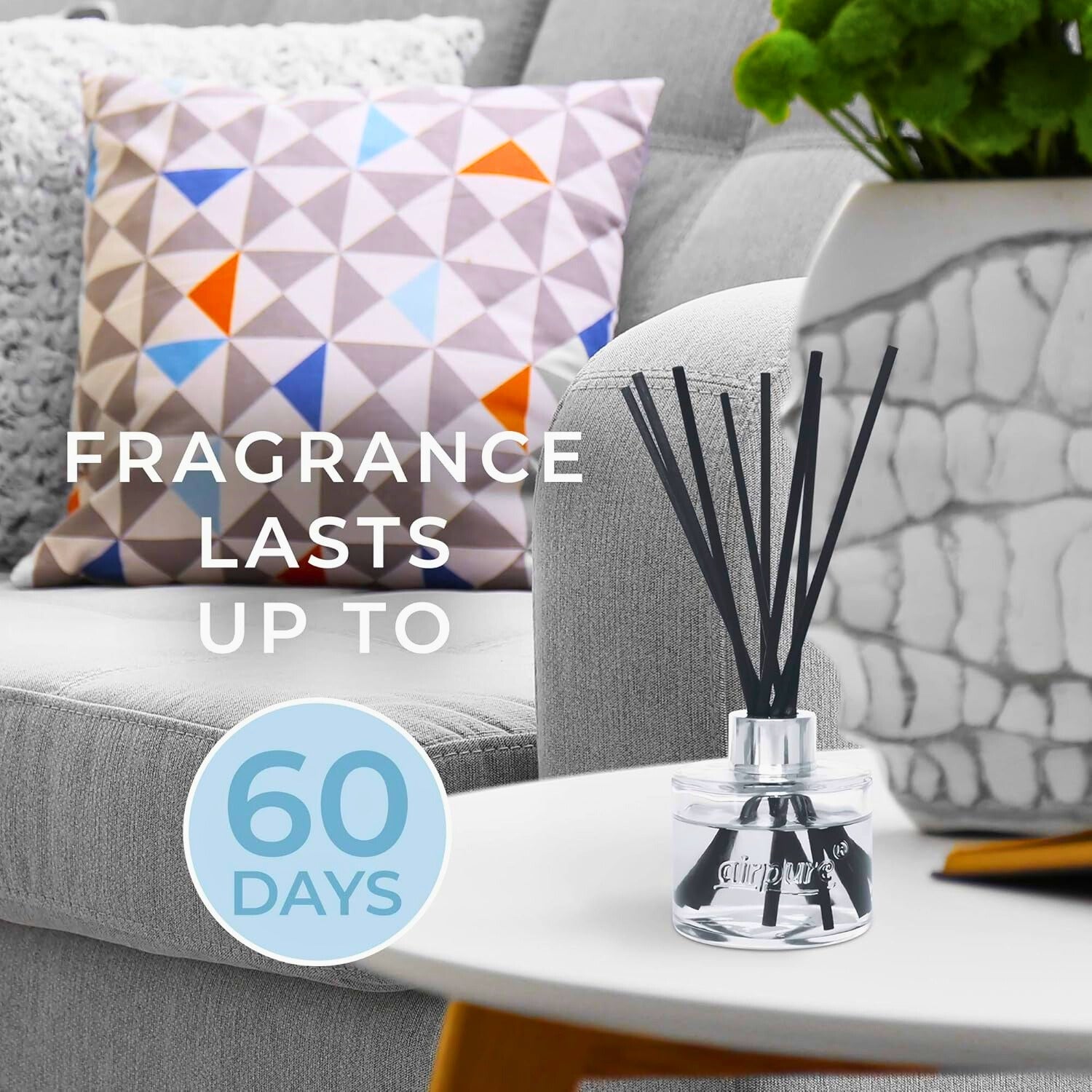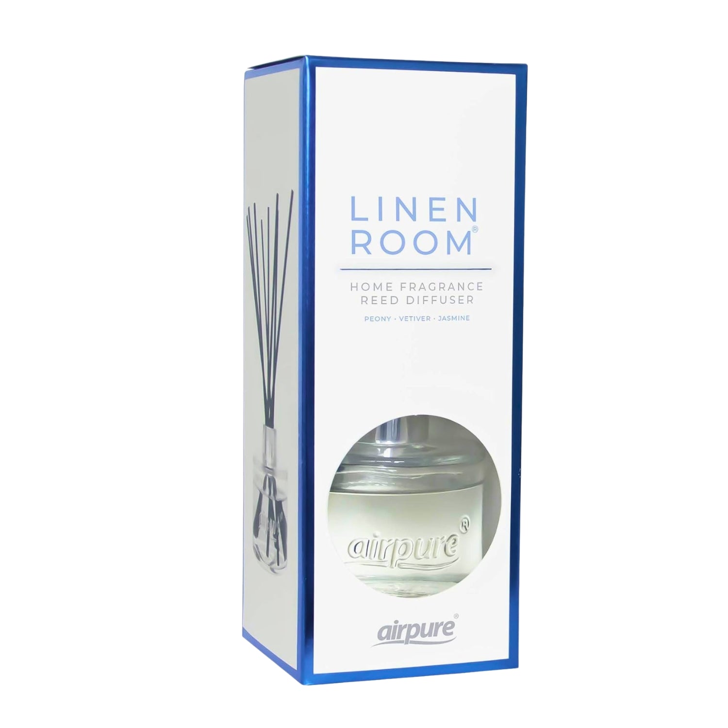 The Airpure Reed Diffuser Linen Room is a stylish, flameless home fragrance solution, designed to continuously release a light, clean scent into your living spaces. The fragrance blends peony, vetiver, and jasmine for a fresh “linen” aroma that evokes the crisp, clean scent of a well-kept home.