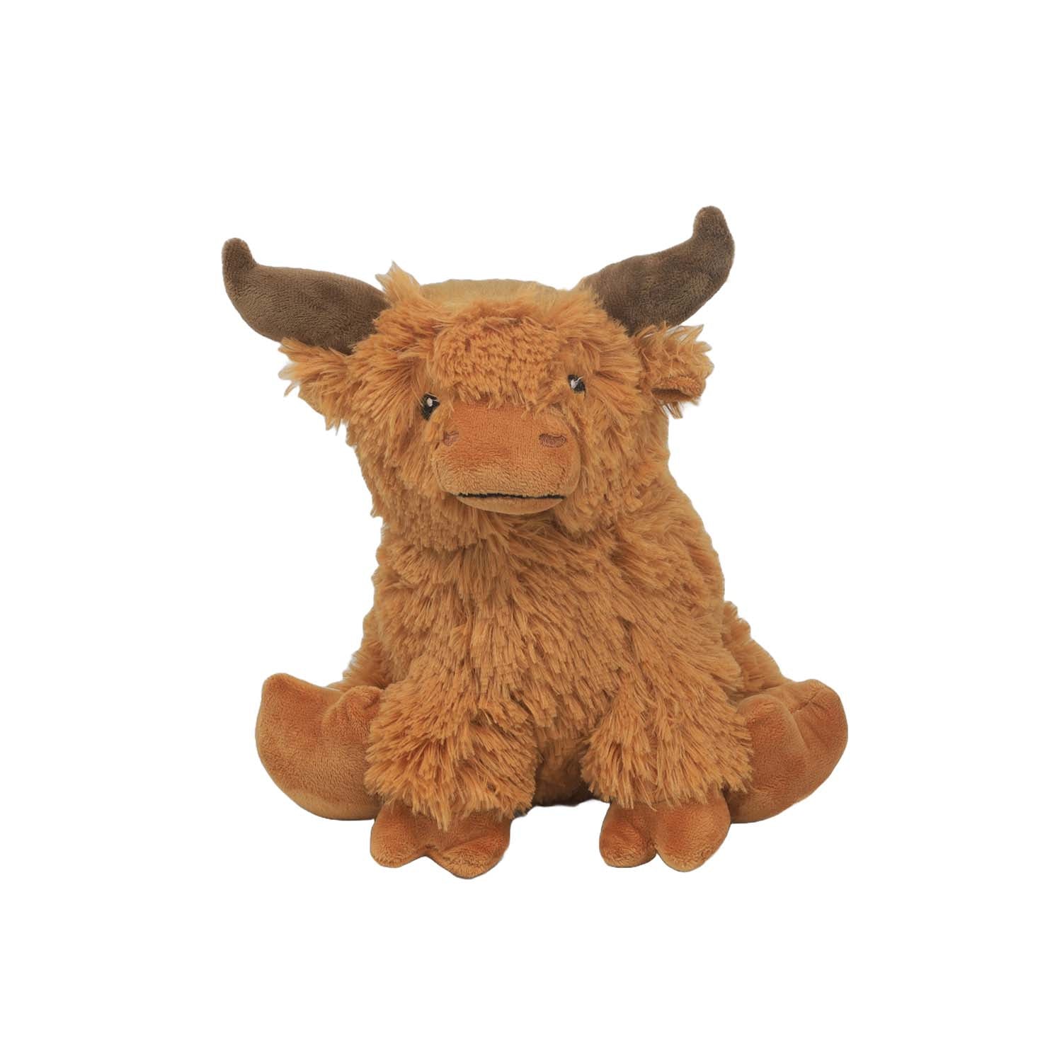 - Made of fabric and sand with a soft-textured finish, this doorstop set features a charming sewn highland cow design in mostly brown tones with realistic accents.
