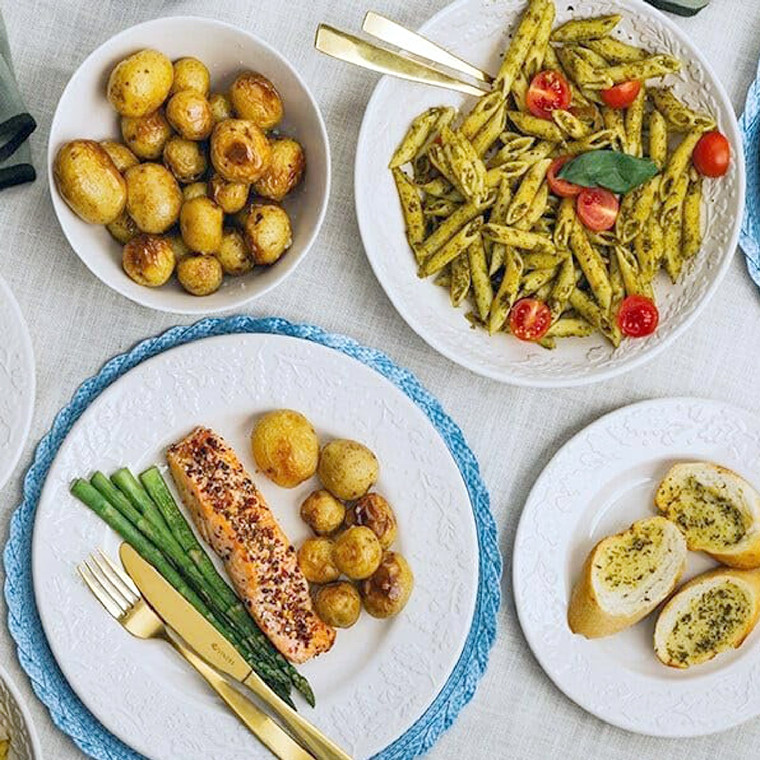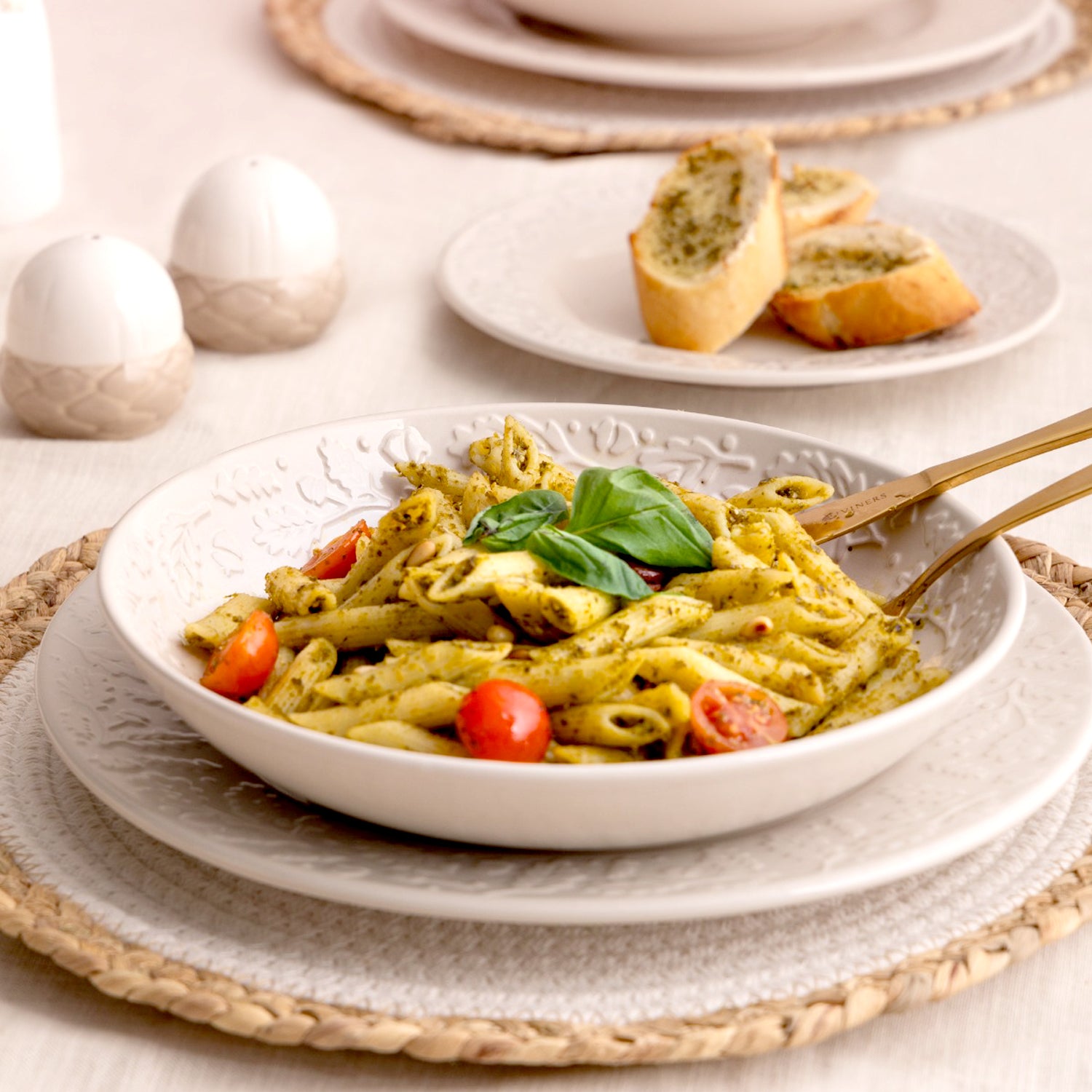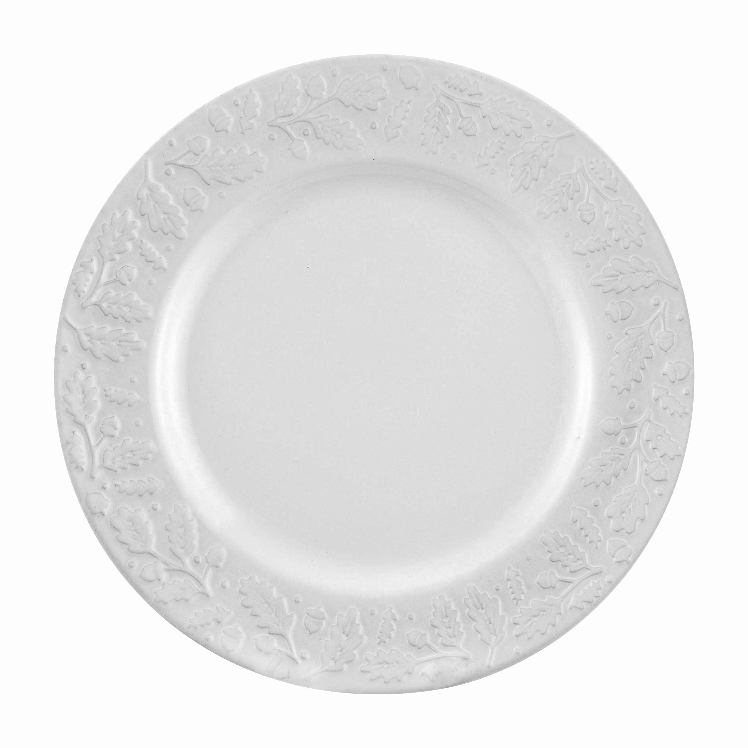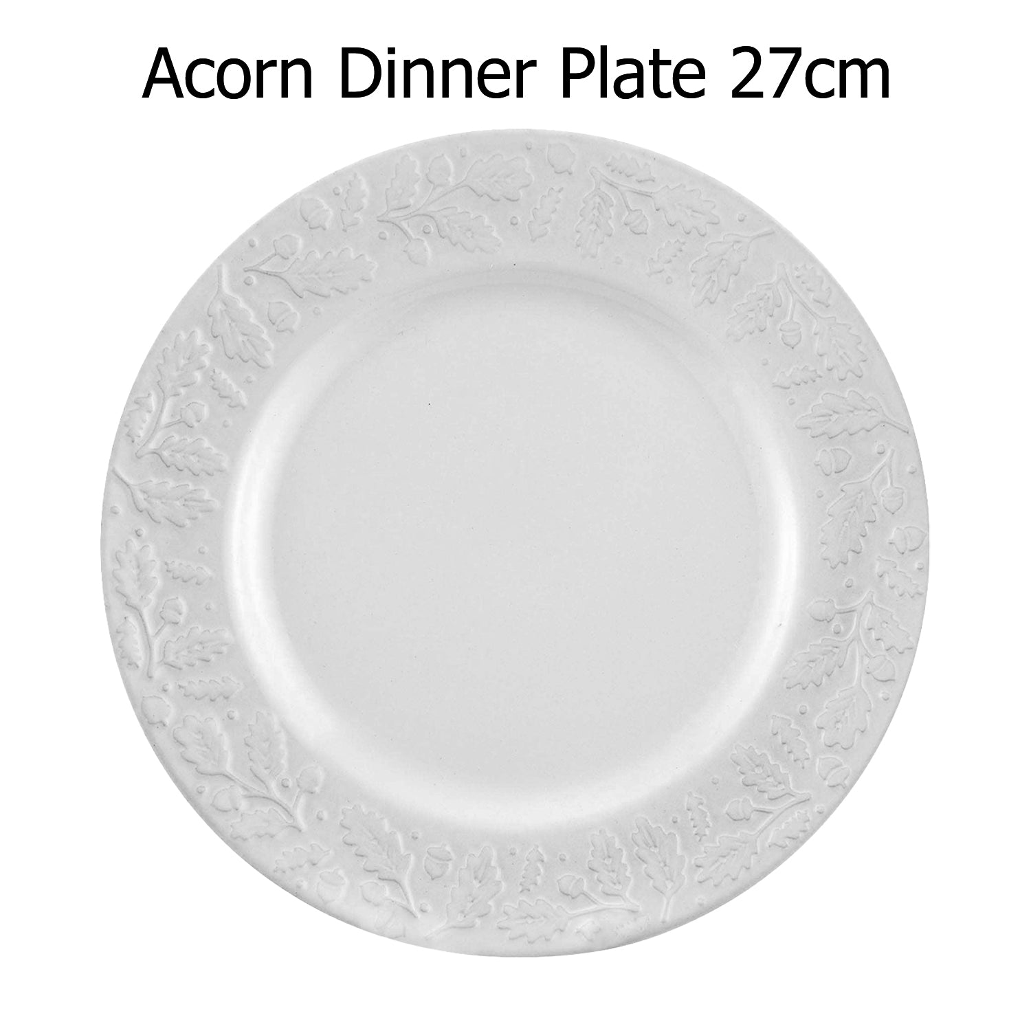 Elevate your dining experience with this exquisite 2pc stoneware dinner plate set featuring delicate embossed acorn motifs. Its soft cream glaze adds a touch of rustic charm, making it perfect for both everyday meals and special occasions. Durable and versatile, these 27cm dinner plates are dishwasher and microwave-safe, combining style and convenience.