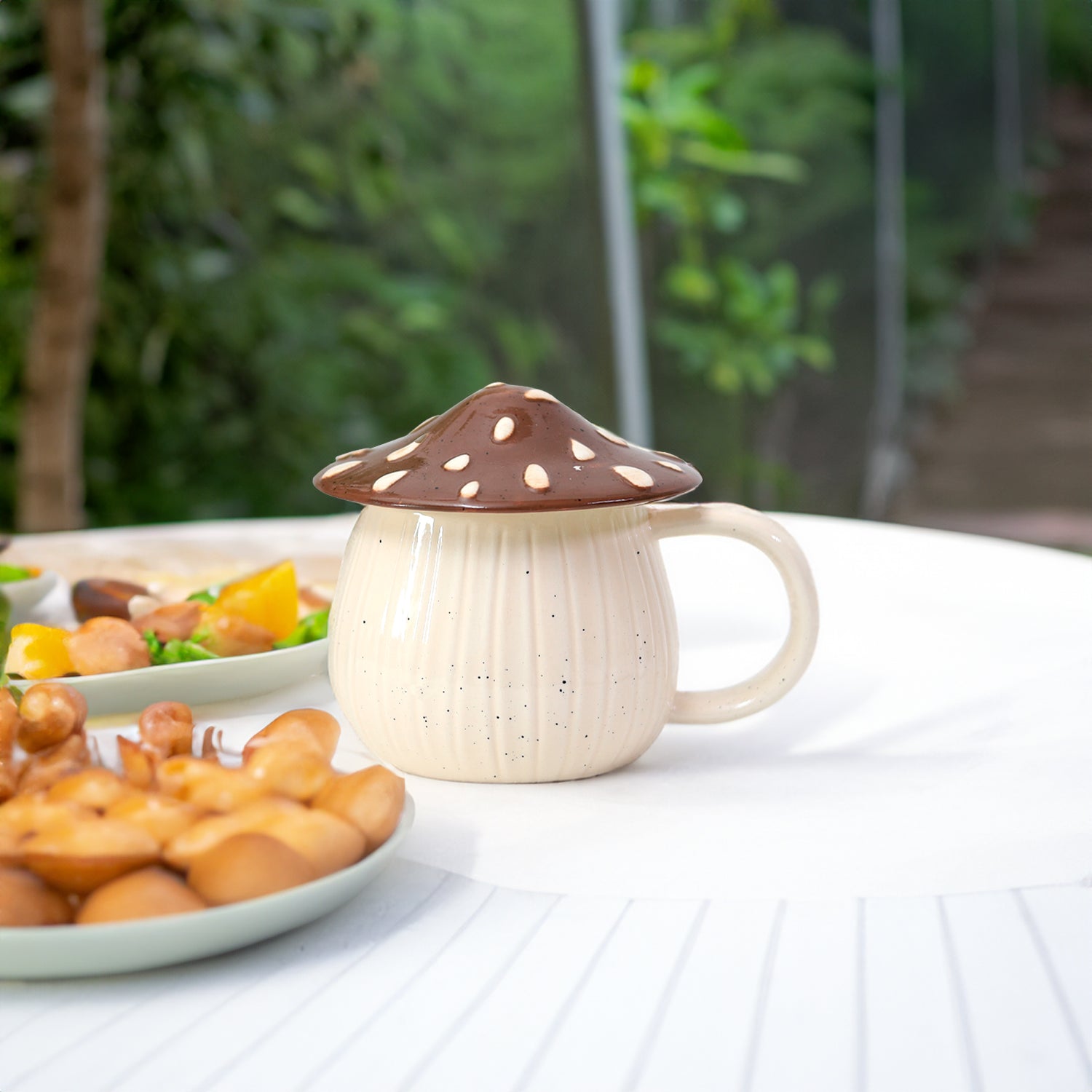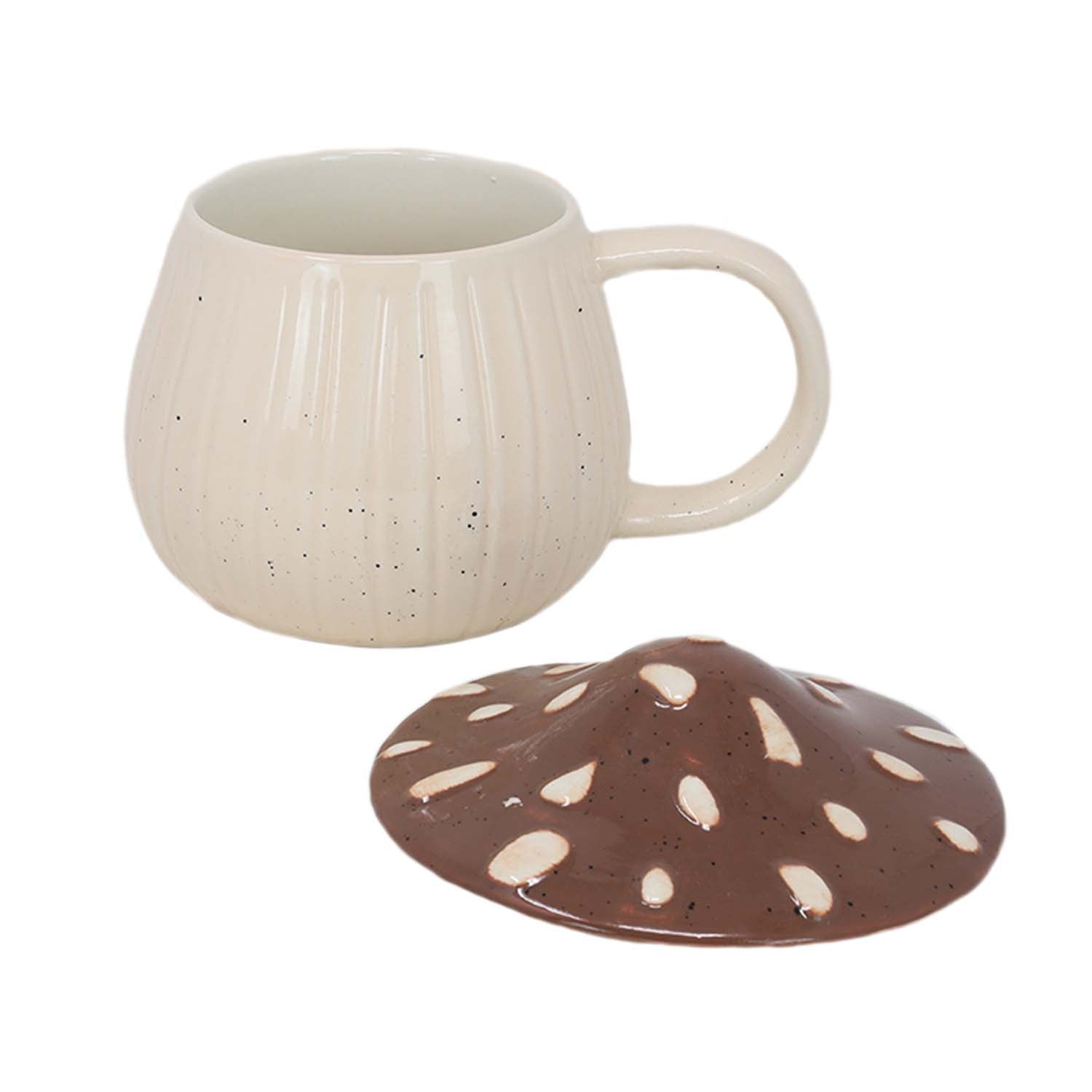 2Pcs Brown Stoneware Novelty Mug With Mushroom Design Lid