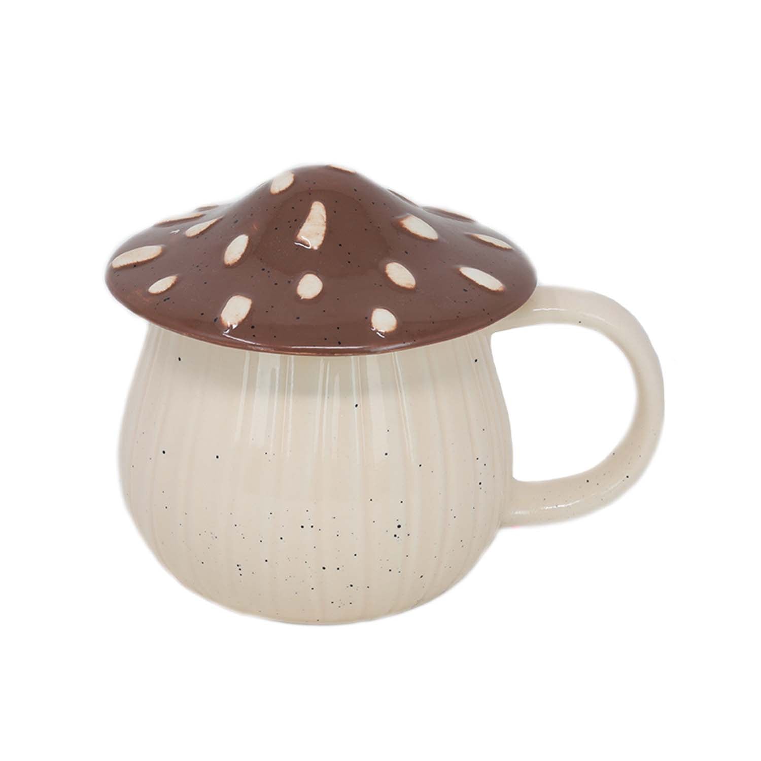 Sip your favourite beverage with this adorable 2pc mushroom-shaped stoneware mug set, complete with a mushroom cap lid for added charm. Featuring a neutral cream and brown colour palette, these round mugs combine whimsy with functionality, making it a perfect gift or addition to any rustic or nature-inspired kitchen decor. This mug set is designed for hand wash only and is not microwave safe.